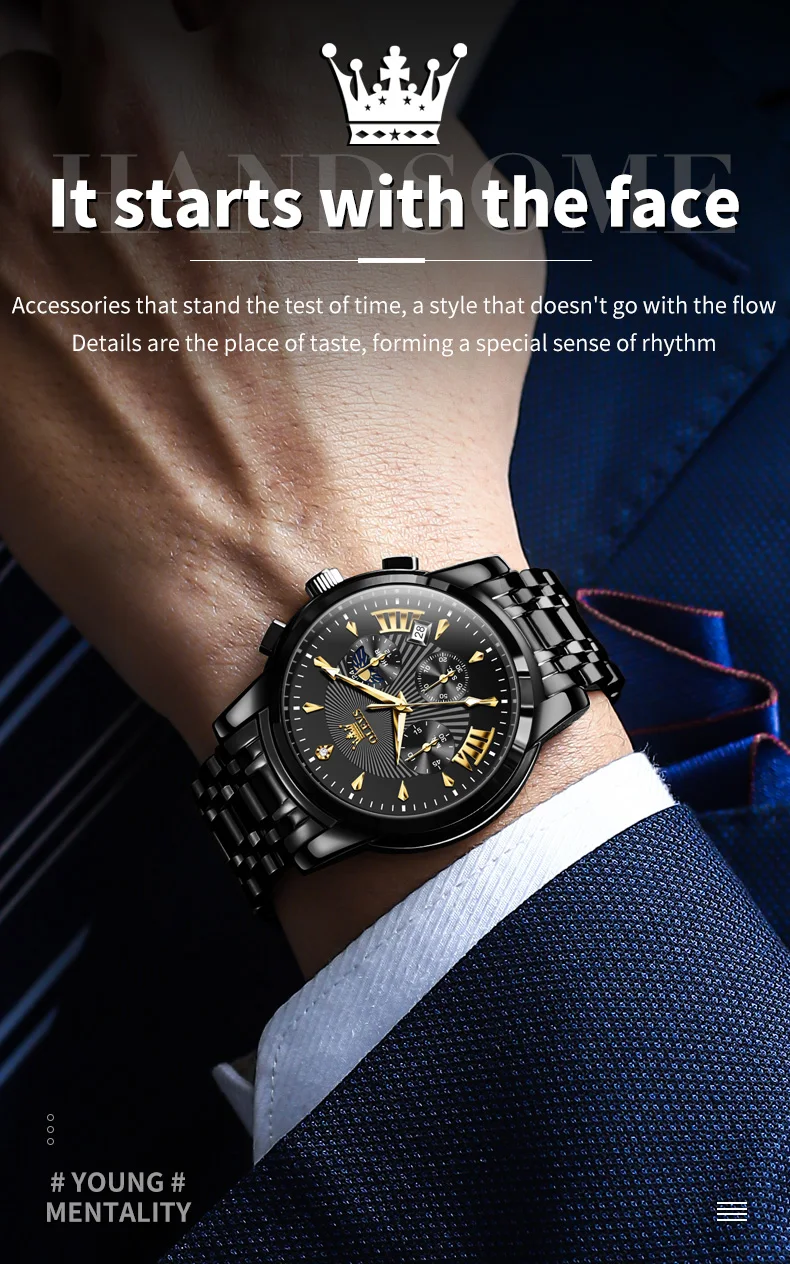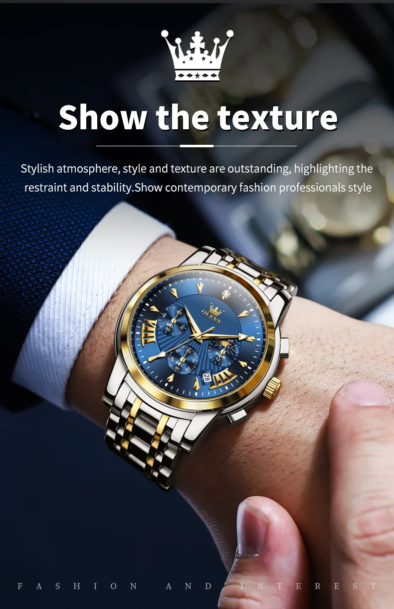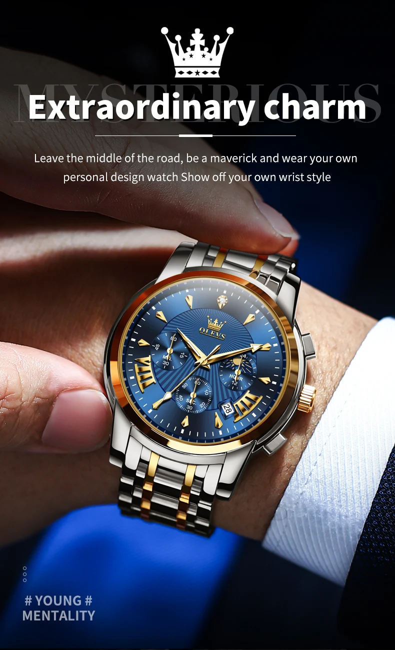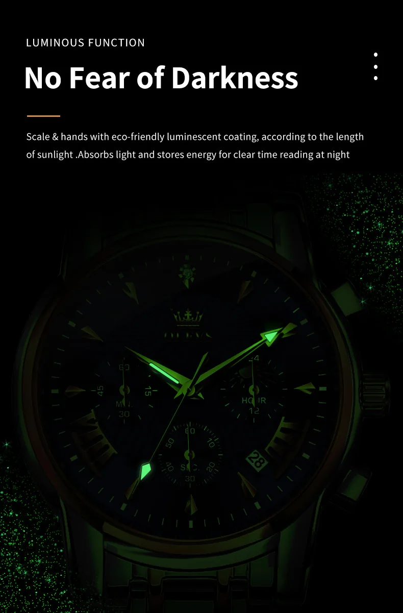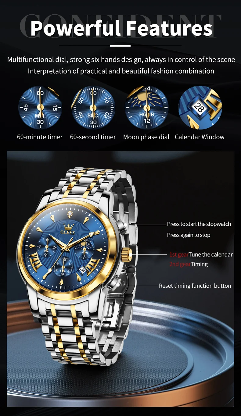 OLEVS 2892 Multi-function Waterproof Watches For Men, Stainless Steel Strap Quartz Fashion Men Wristwatches Moon Phase