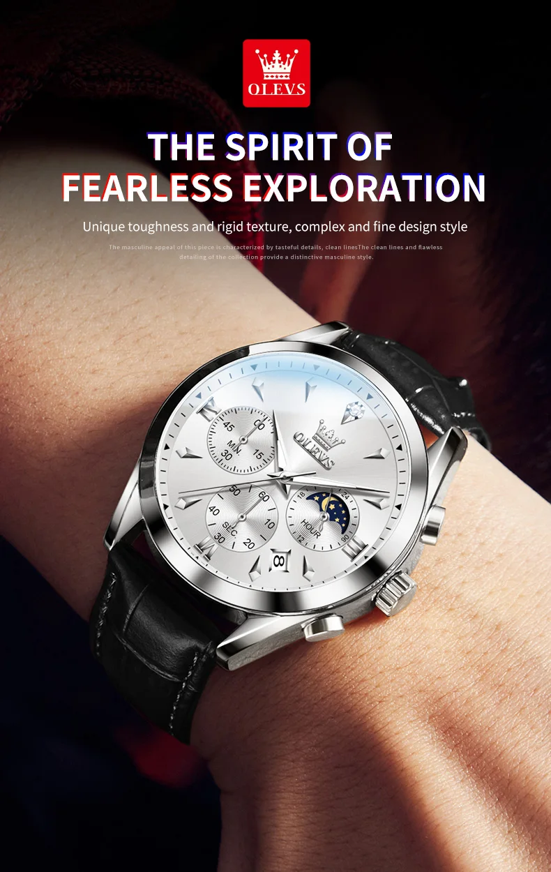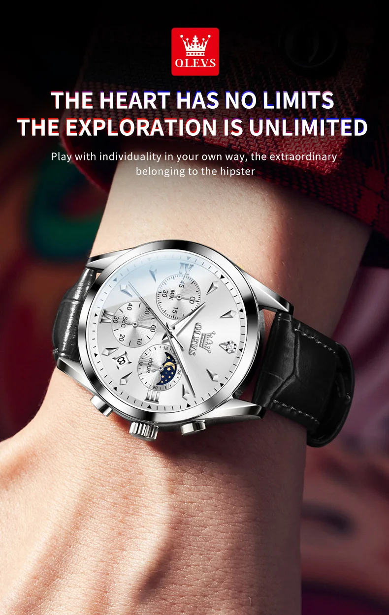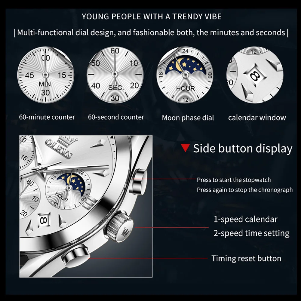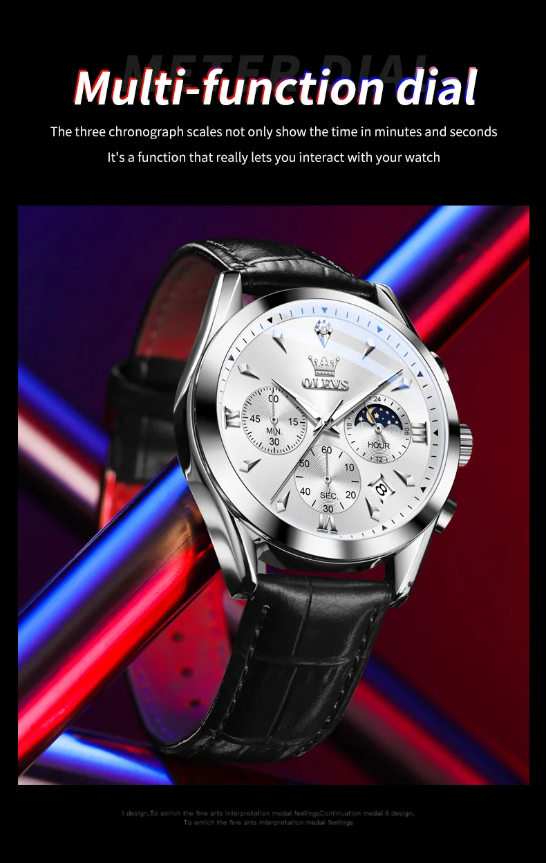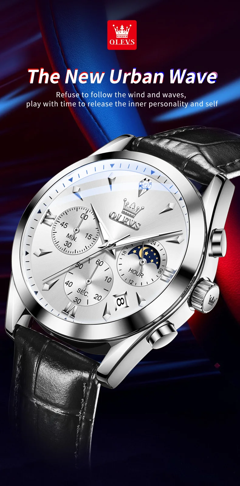 OLEVS 3609 Moon Phase Original Man Wristwatch Chronograph Quartz Watch For Men Waterproof Luminous Luxury Business Watches 2024