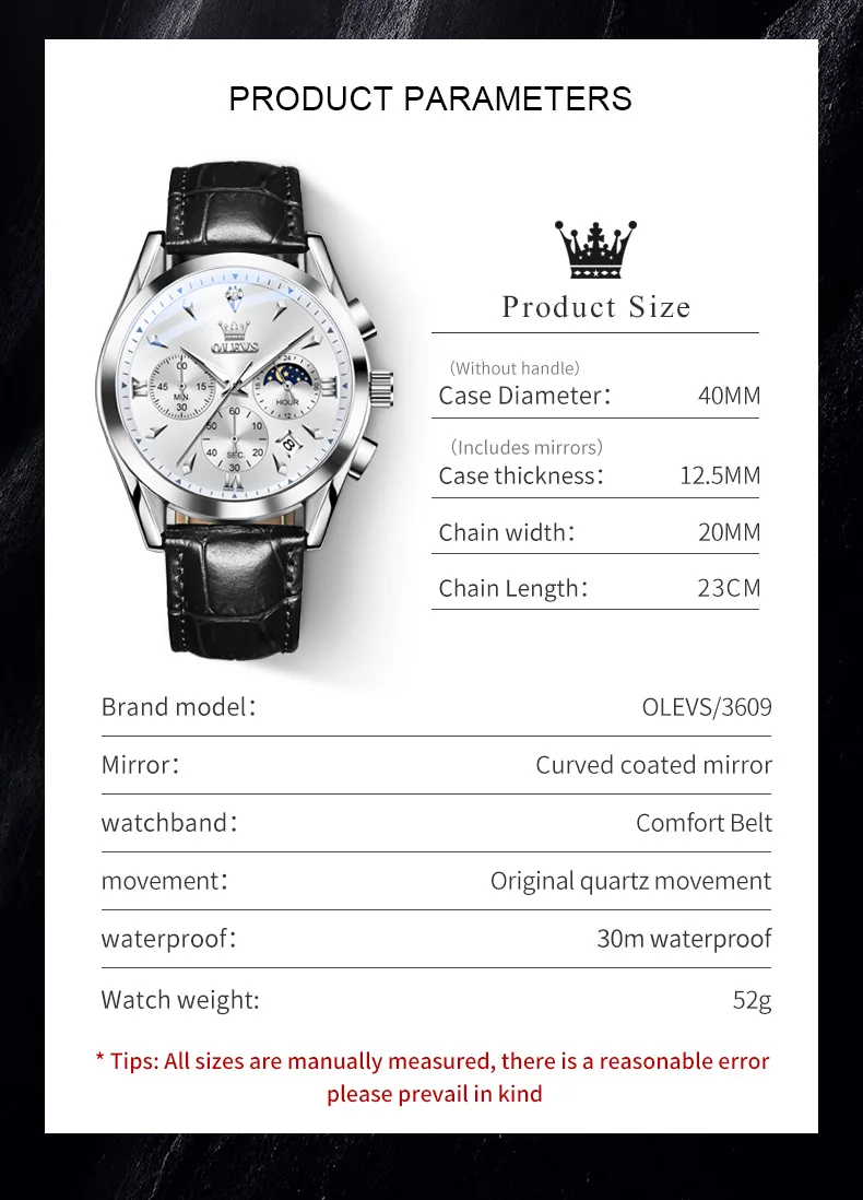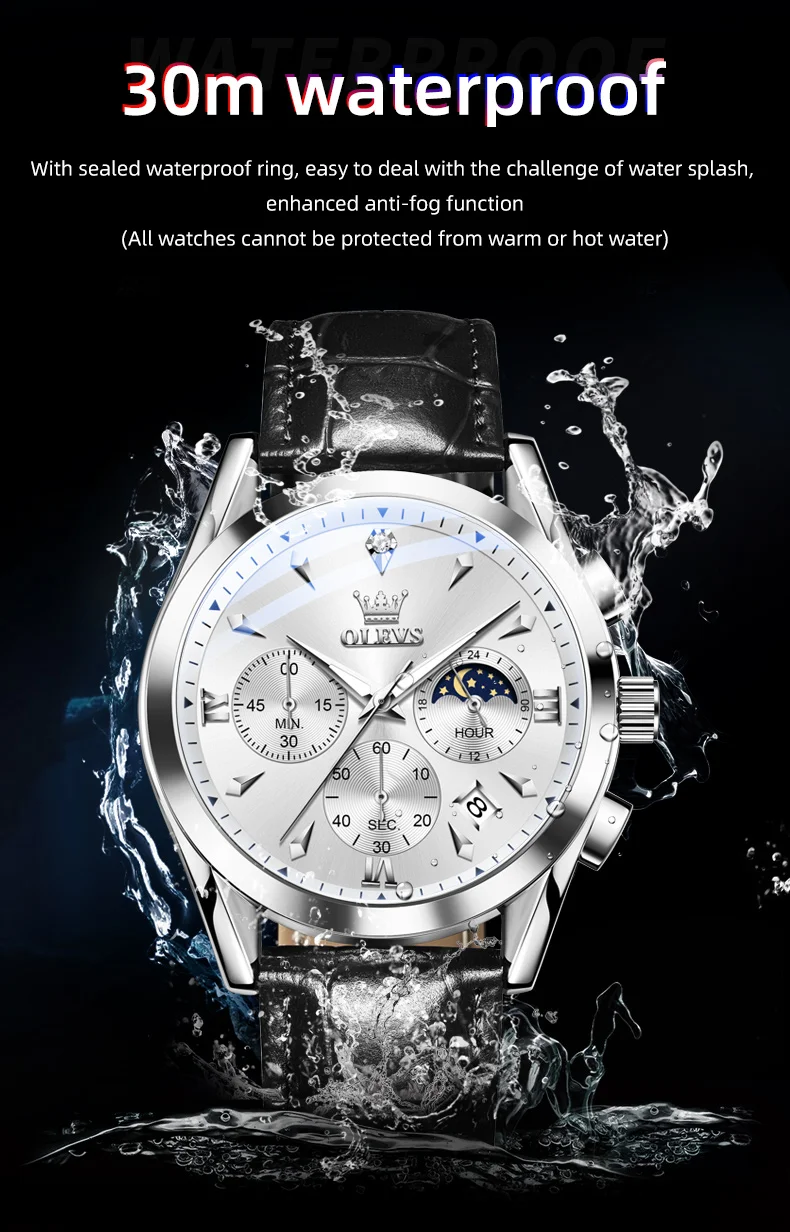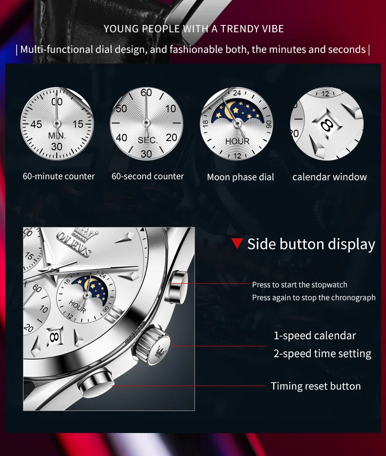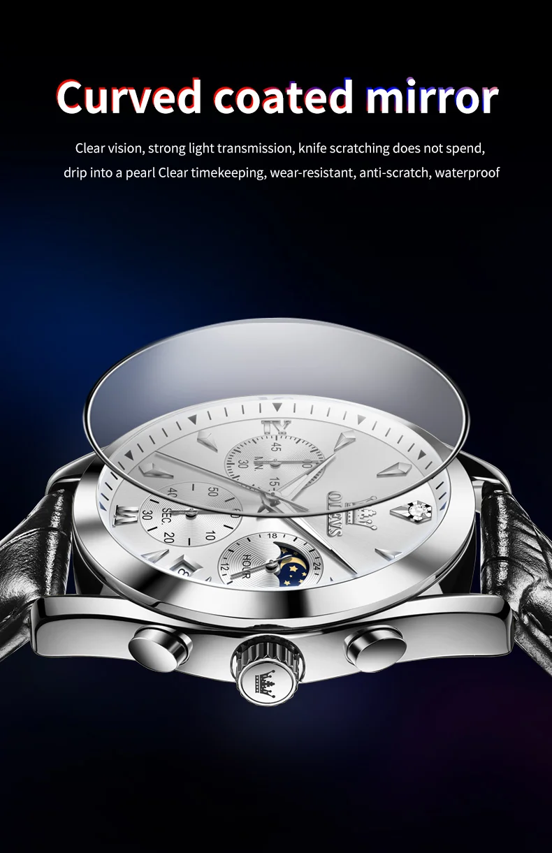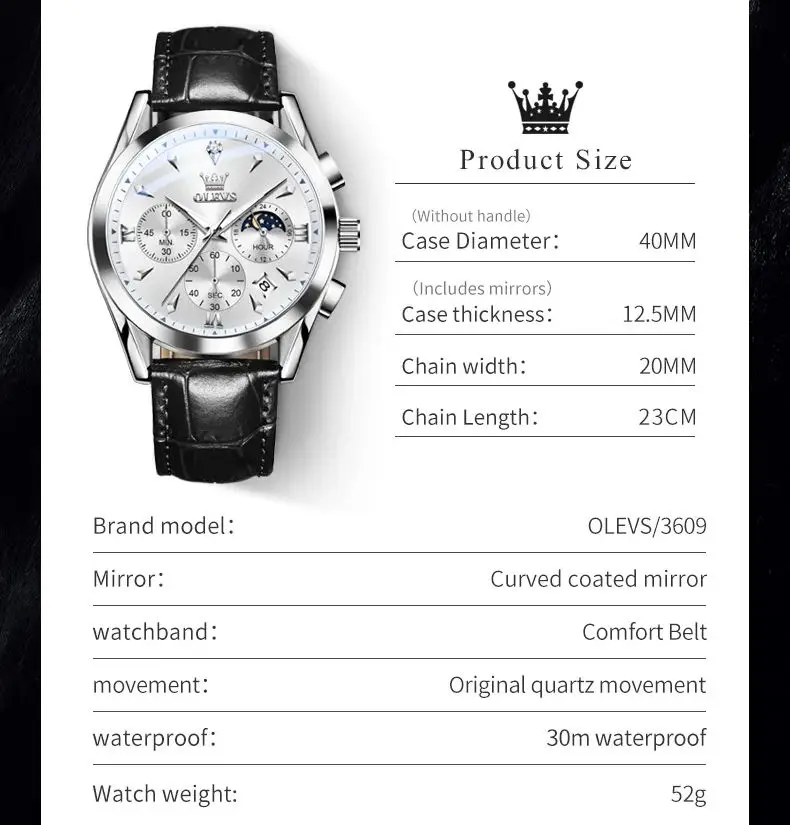 OLEVS 3609 Moon Phase Original Man Wristwatch Chronograph Quartz Watch For Men Waterproof Luminous Luxury Business Watches 2024