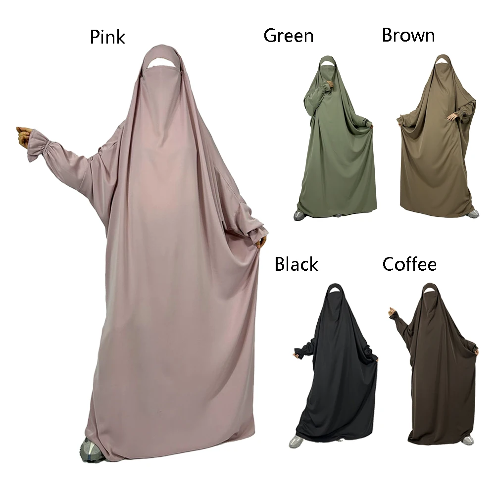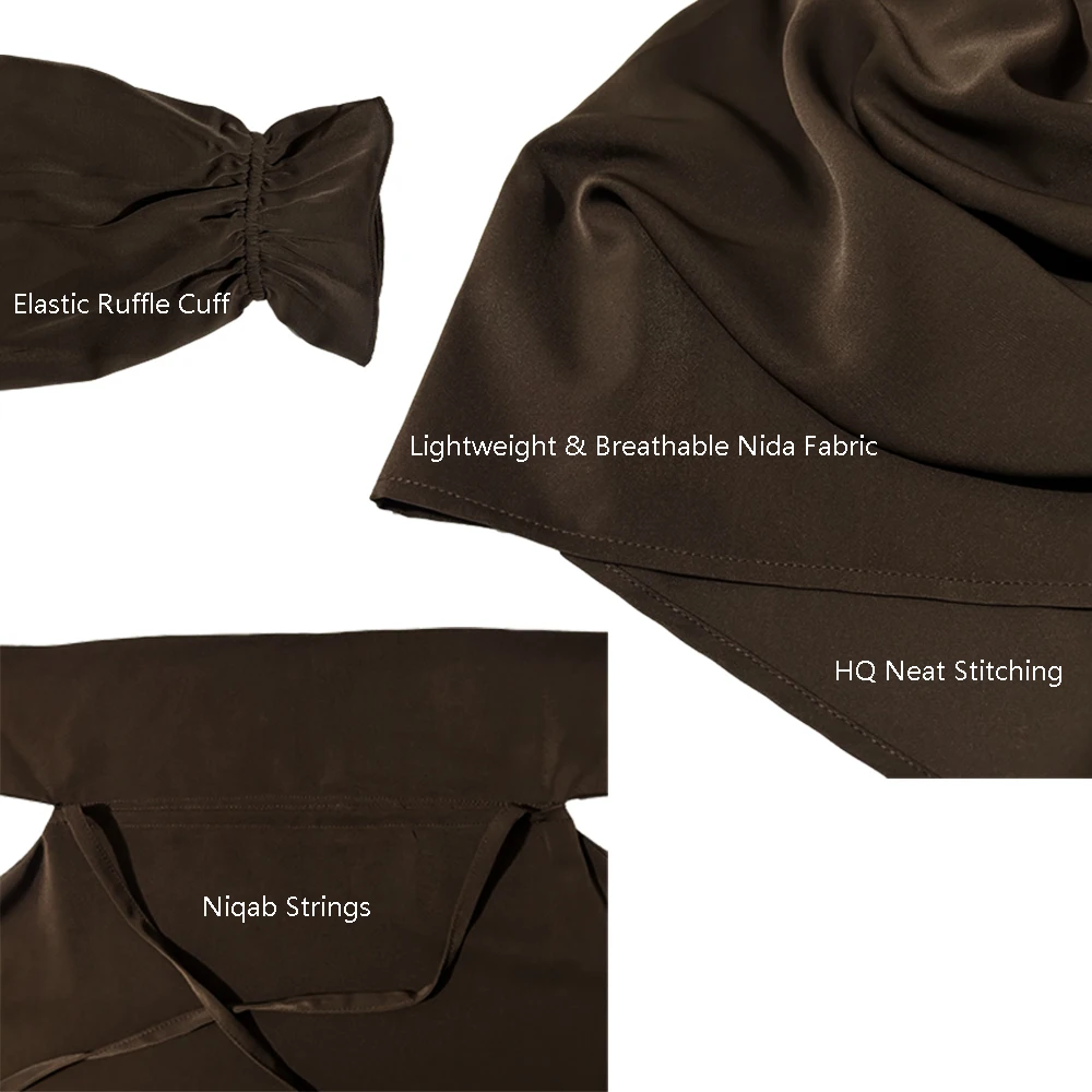 One Piece Jilbab with Niqab Straps Ruffle Cuff Lightweight Breathable Nida Wholesale EID Ramadan Muslim Islamic Prayer Dress