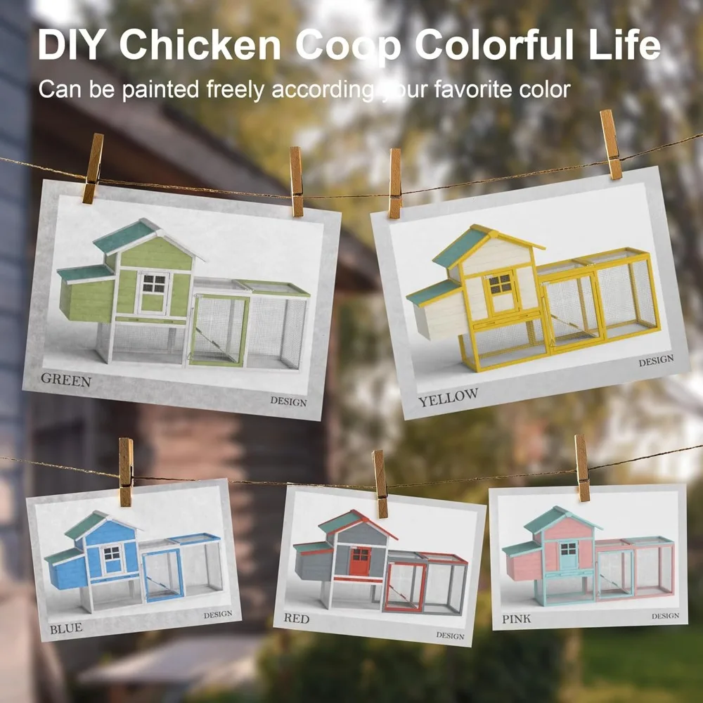 - 【Durable and Weatherproof Wooden Chicken Coops】Solid rain-resistant fir wood with Environmental painted keep the Poultry Hutch waterproof and not afraid of sun anymore. Green asphalt sloping roof to protect from water penetration.