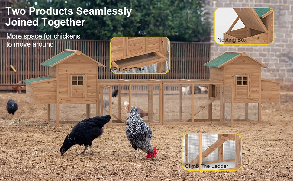 - 【Coops come with Removable tray & Grinding Fences】There is removable bottom sliding tray for easy cleaning. High quality gridding fences provide a healthy poultry lifestyle. With the pitched roof your poultry can run outside even in rainy days. The fences are vital to the ventilation of poultry, they will also protect your poultry from the outside predators.