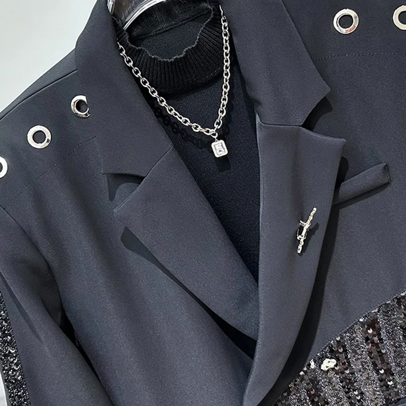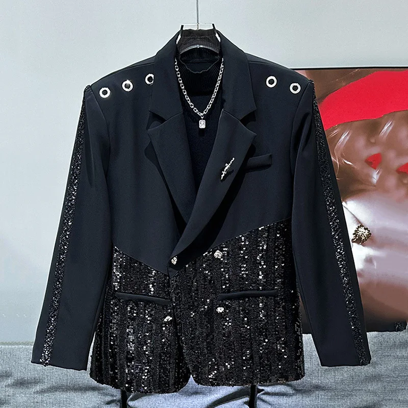 PFHQ Fashionable Metal Ring Decoration Sequin Splicing Design Suit Jacket New Korean Patchwork Long Sleeve Male Tops 21Z6071