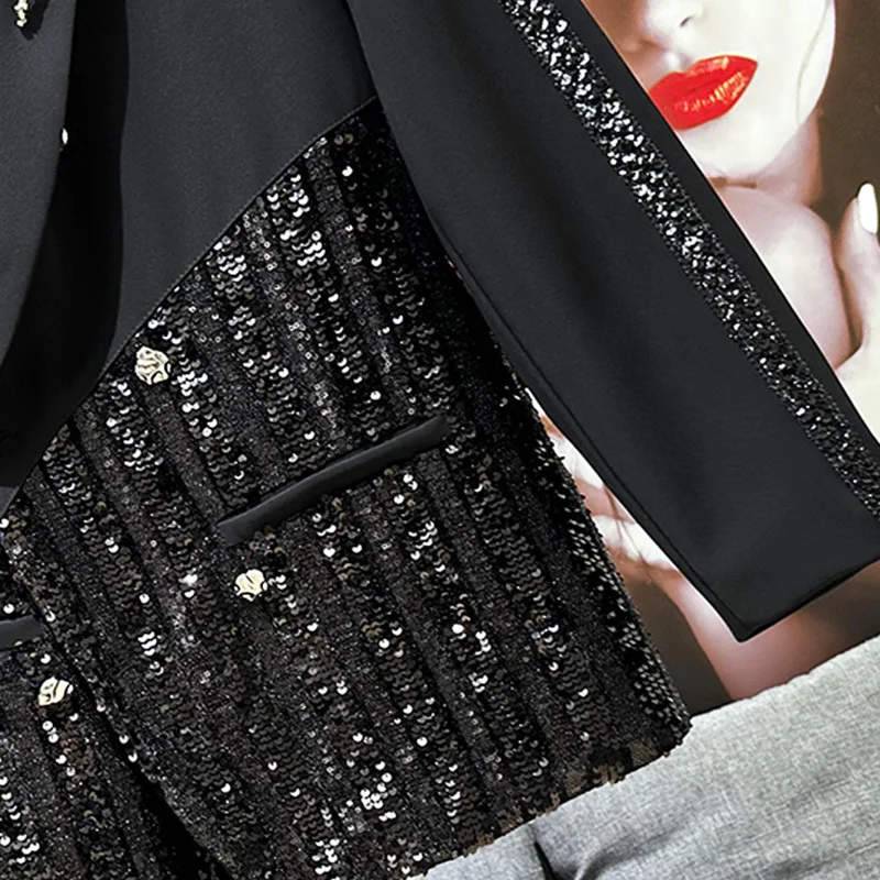 PFHQ Fashionable Metal Ring Decoration Sequin Splicing Design Suit Jacket New Korean Patchwork Long Sleeve Male Tops 21Z6071