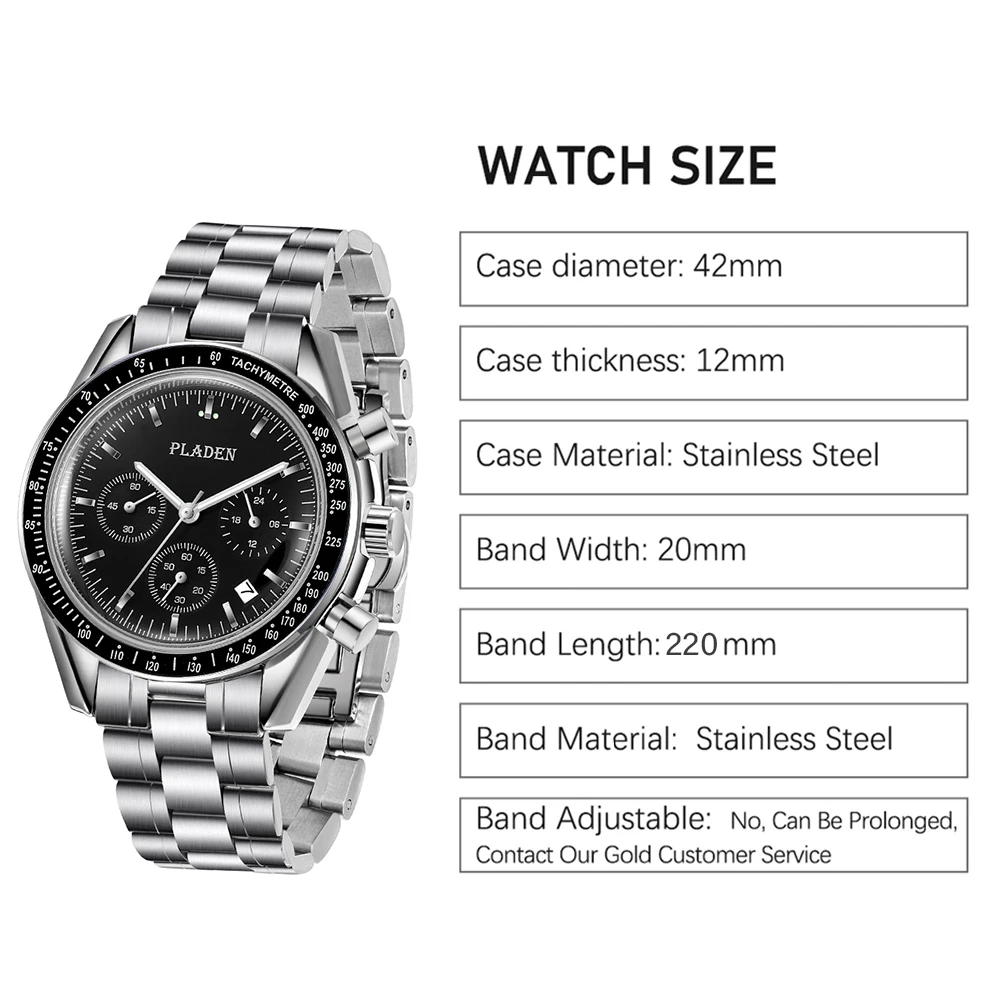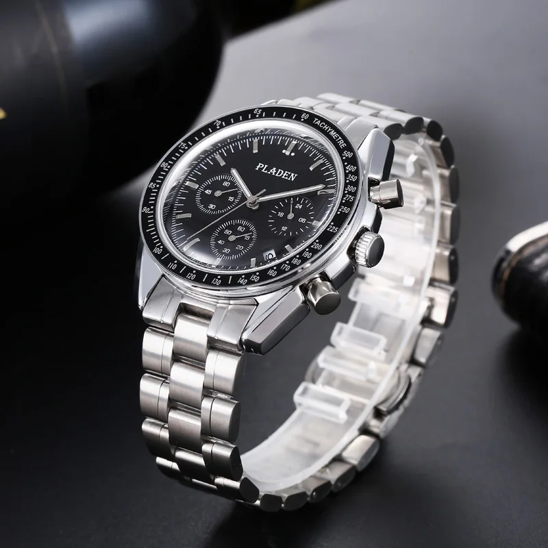PLADEN New Arrival Luxury Watch For Men Fashion Stainless Steel Chronograph Quartz Wristwatch Business Sport Waterproof Watches