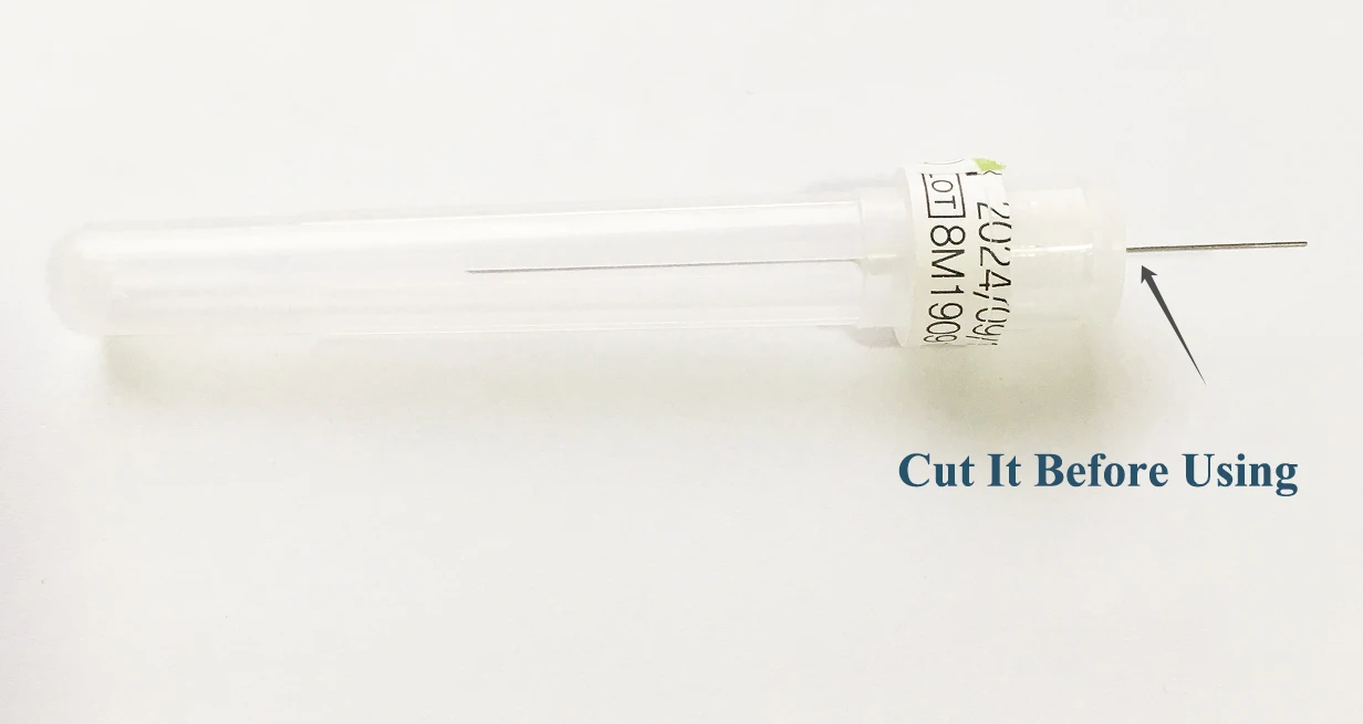 Note: The needle is original. before use, please use scissor or other tools cut the overlong needle. as show in the picture below. Any questions, just contact us.