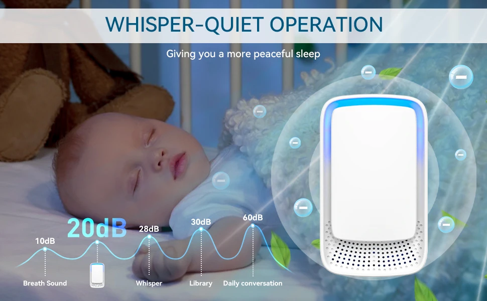 A near-silent function and soundless ionic purification run continuously to refresh air without. This air purifier works quietly in the background to provide any room.
