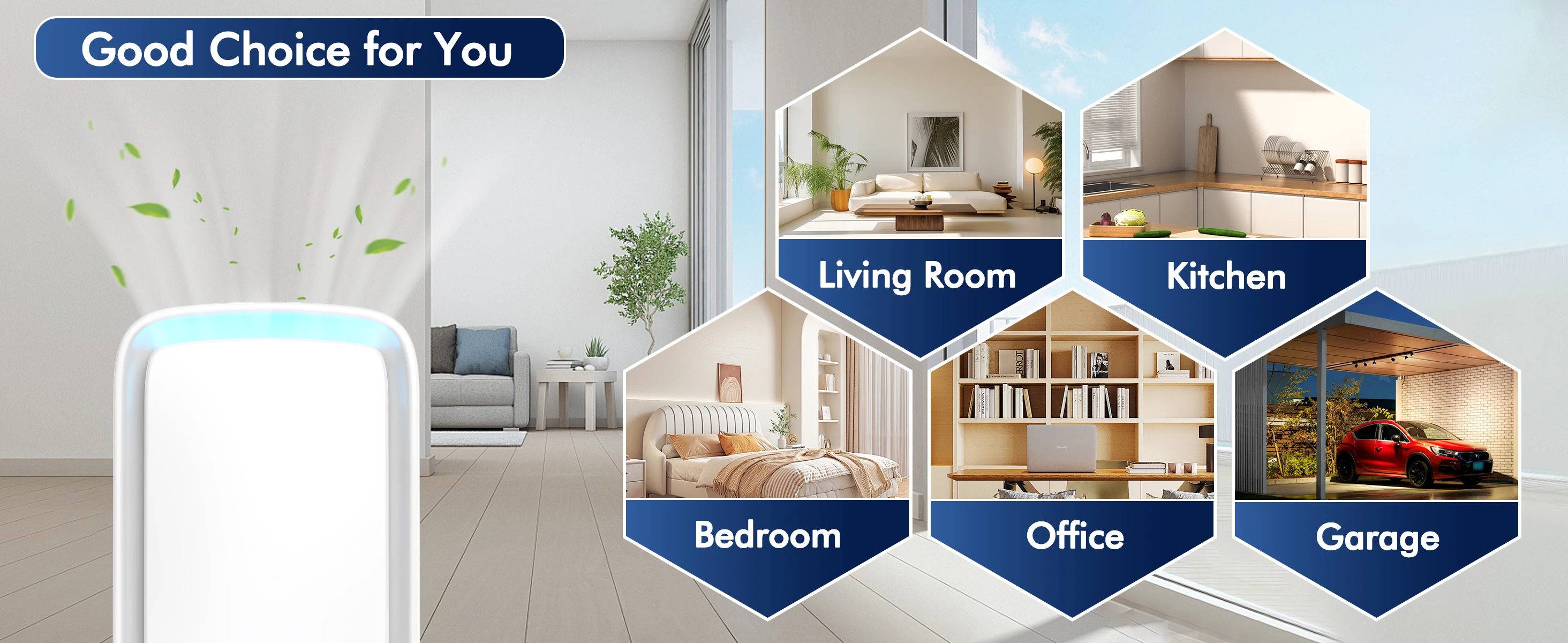 At only 2.36 inches wide and 3.93 inches long.The plug in air purifier is suitable for bedroom,bathroom,kitchen,living room,garage,basement,gym,hallways and office use.