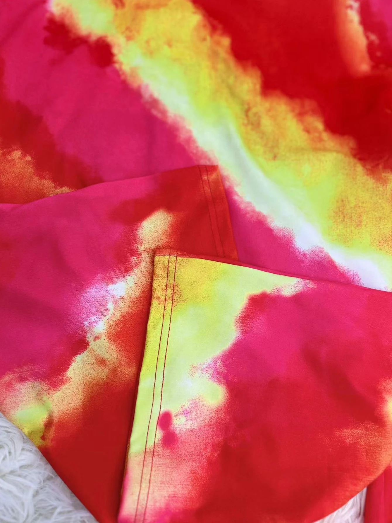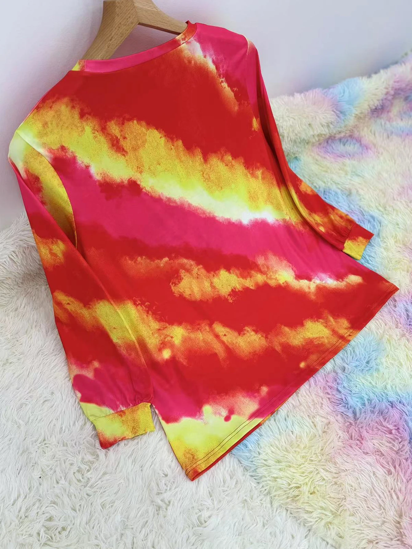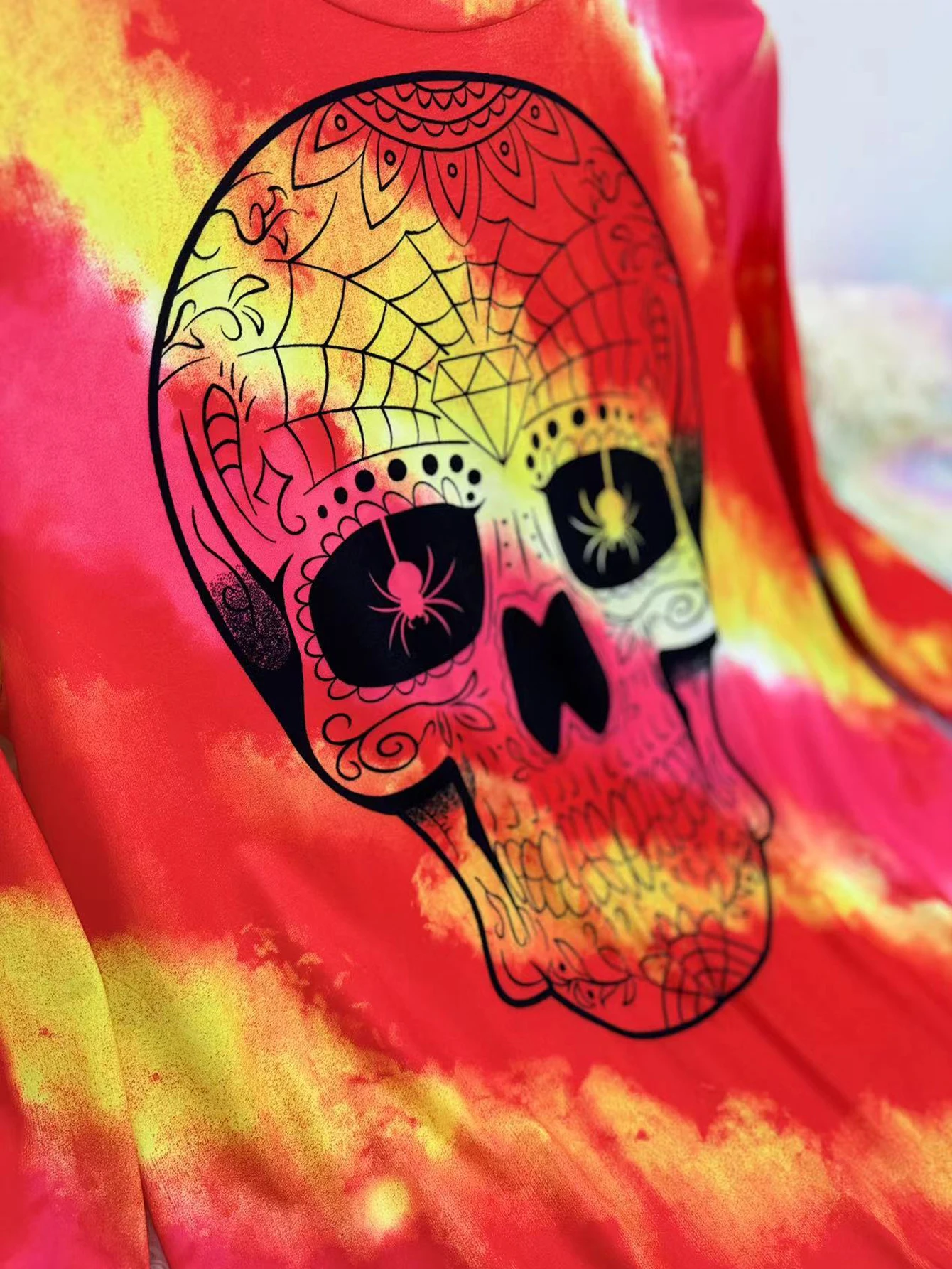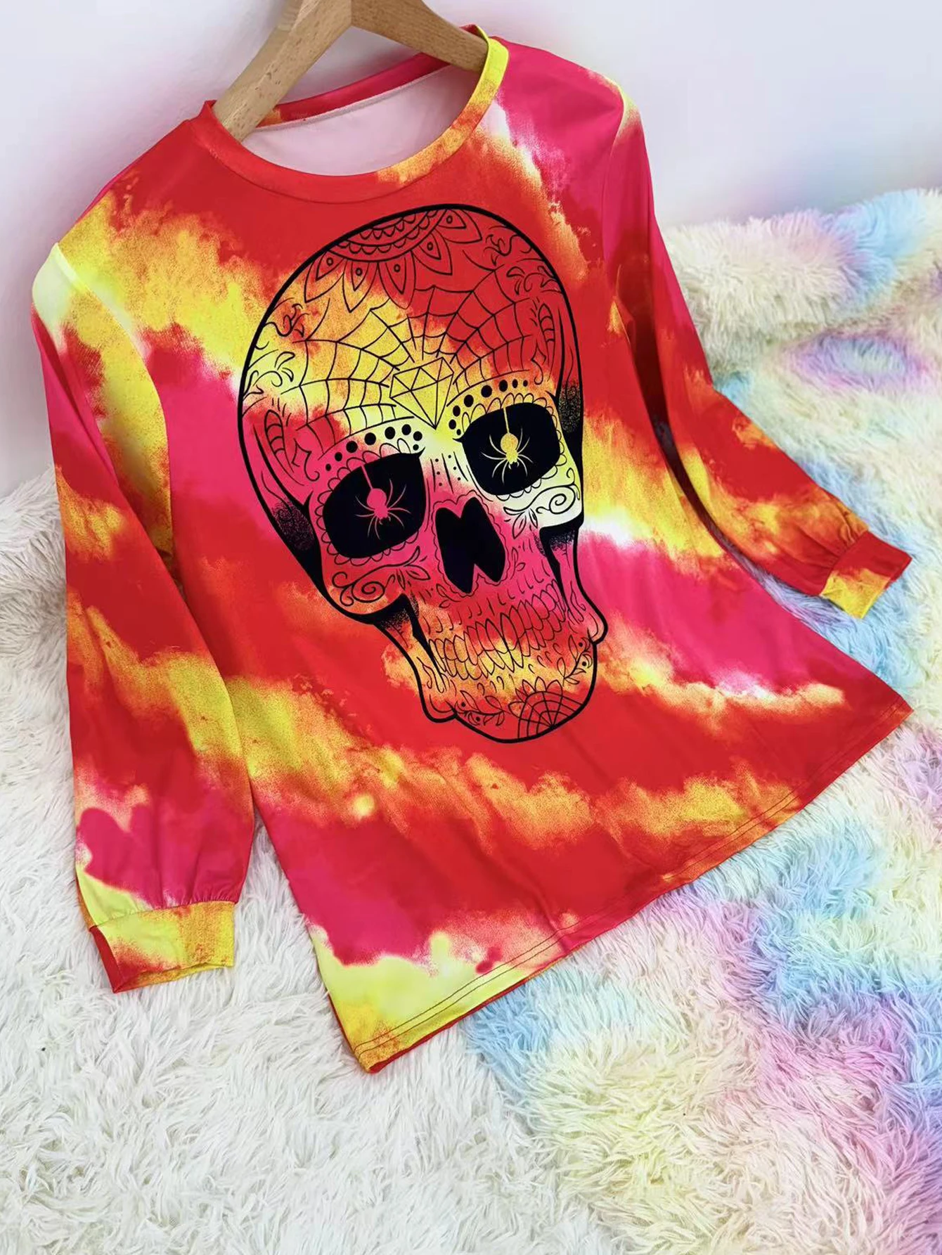 Plus Size Halloween Print Tie Dye T-Shirt Casual Long Sleeve Crew Neck Top Suitable for Spring and Autumn