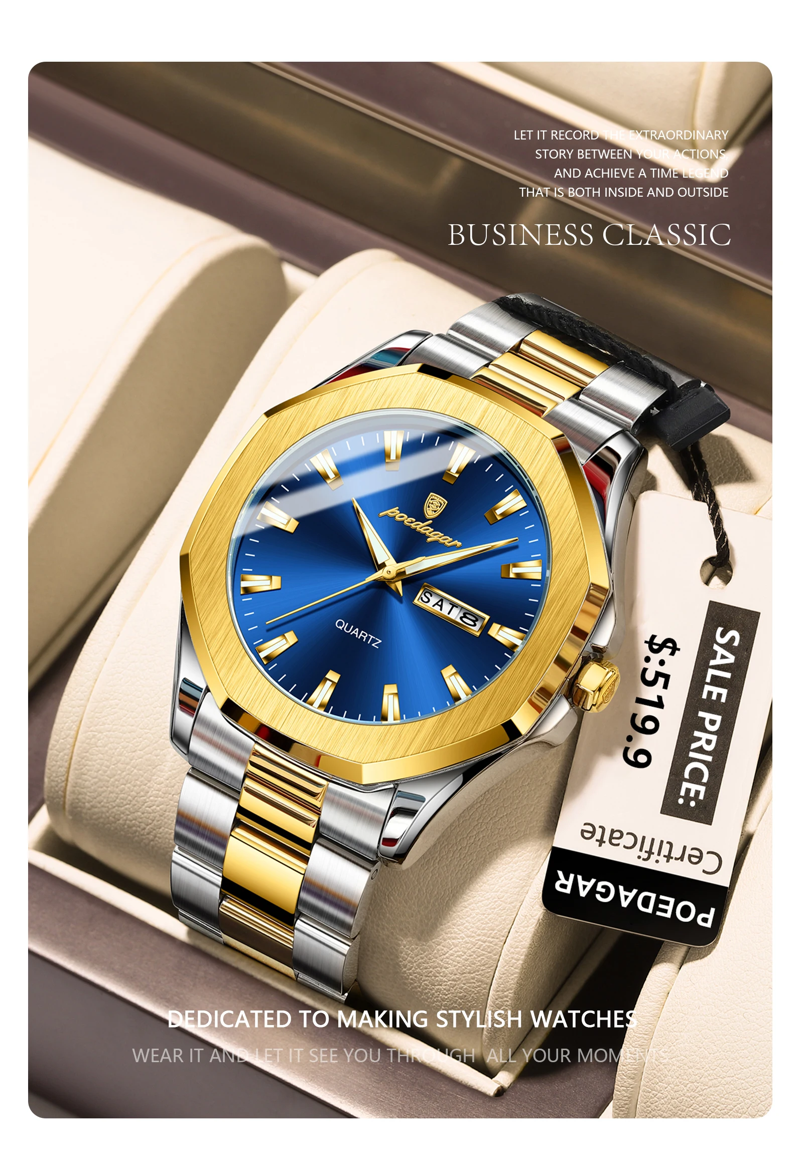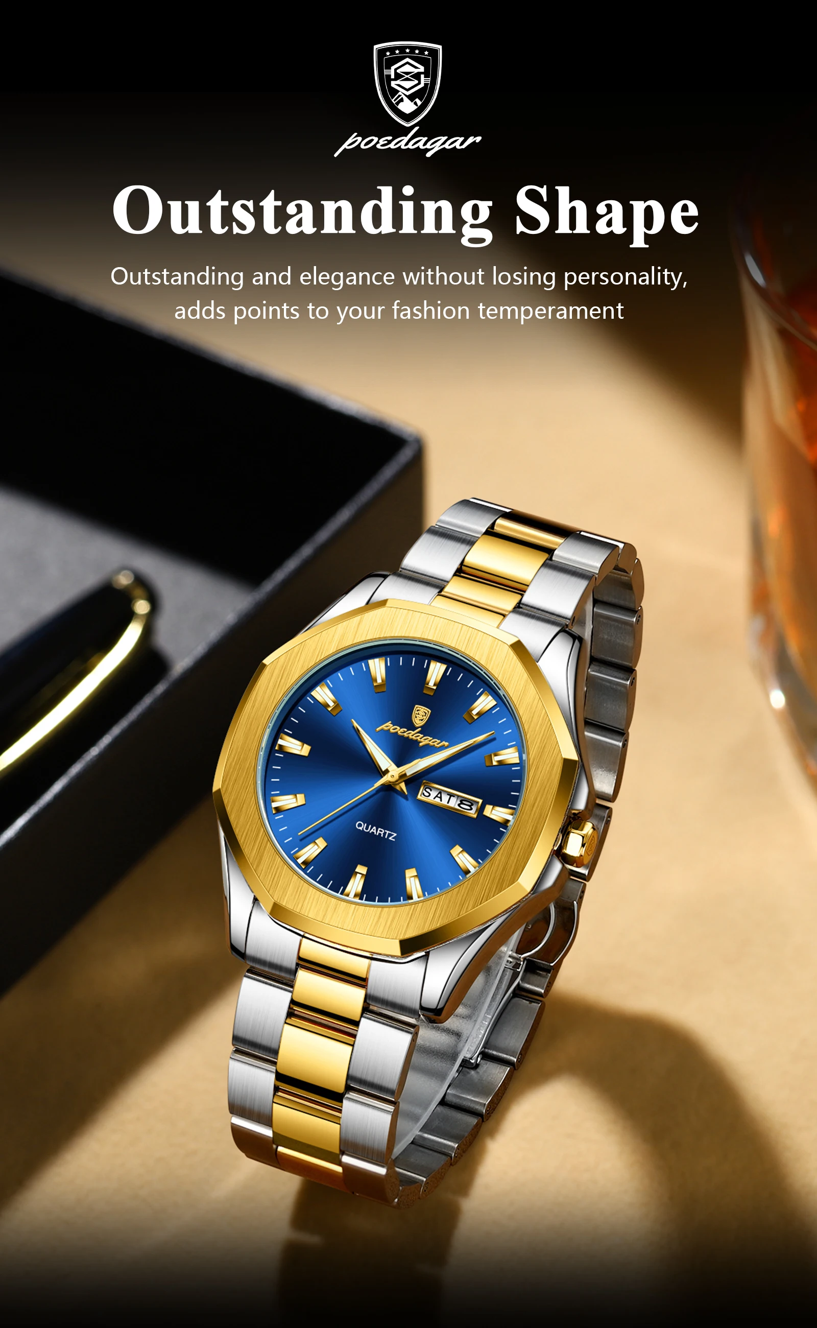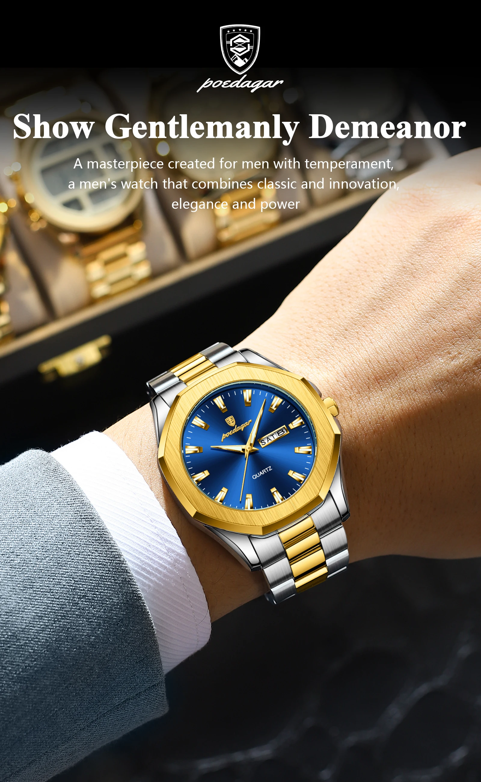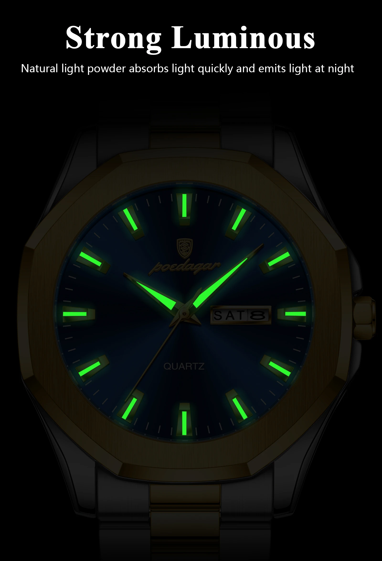 POEDAGAR Luxury Men Wristwatch Waterproof Luminous Week Date Original Man Watch Stainless Steel Sport Quartz Men’s Watches Reloj