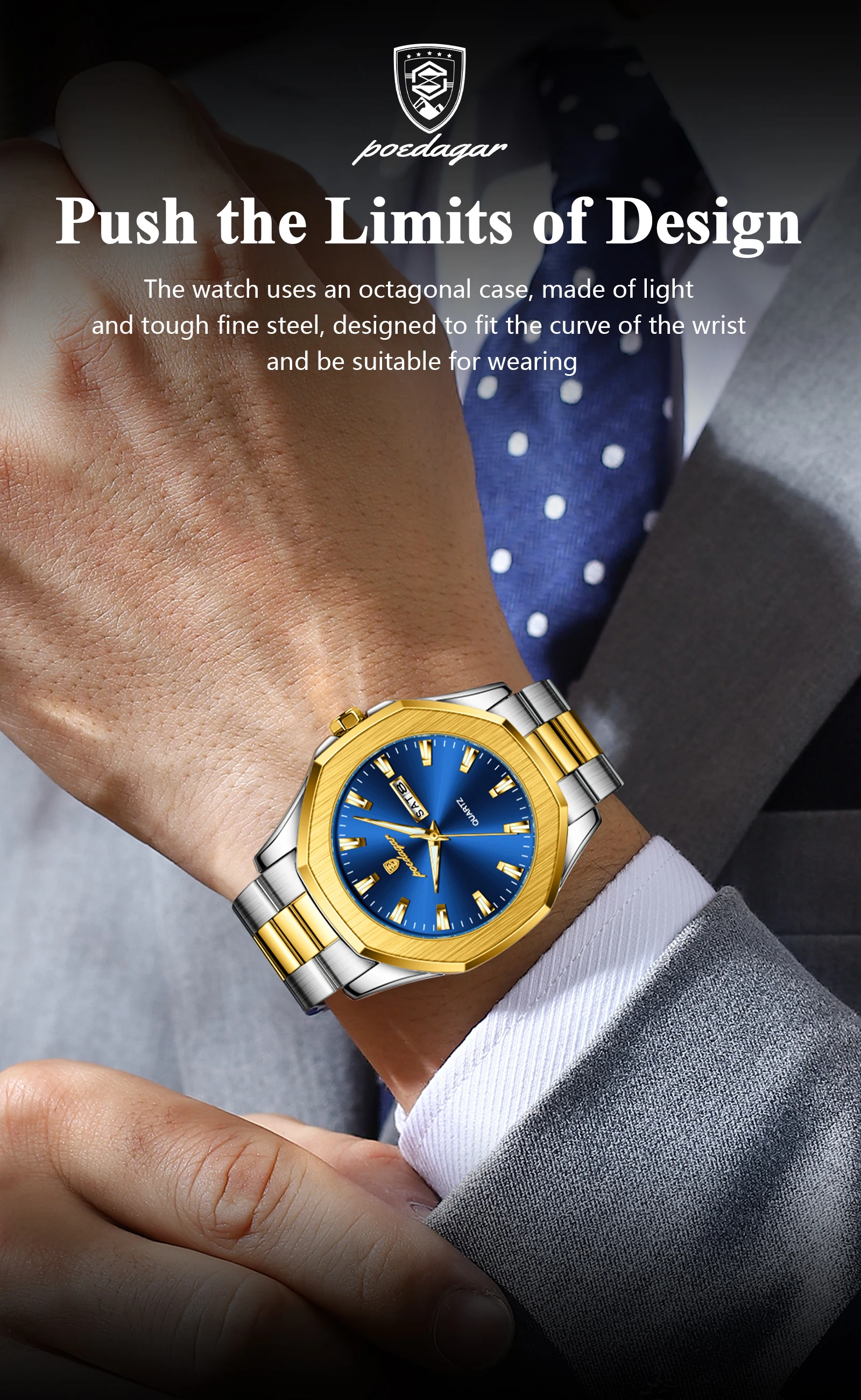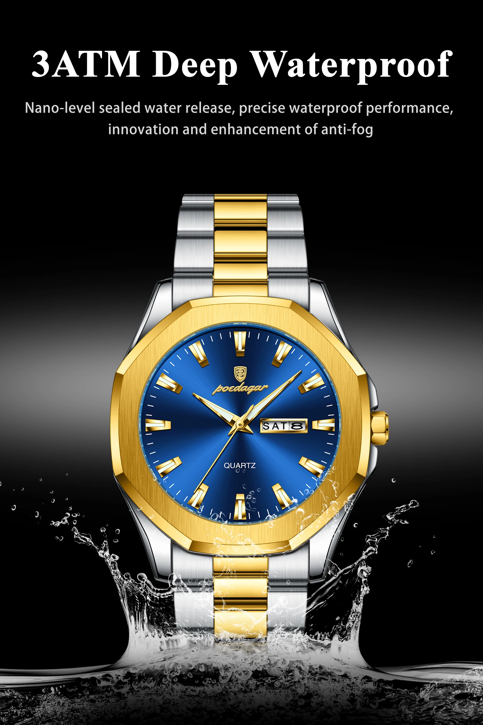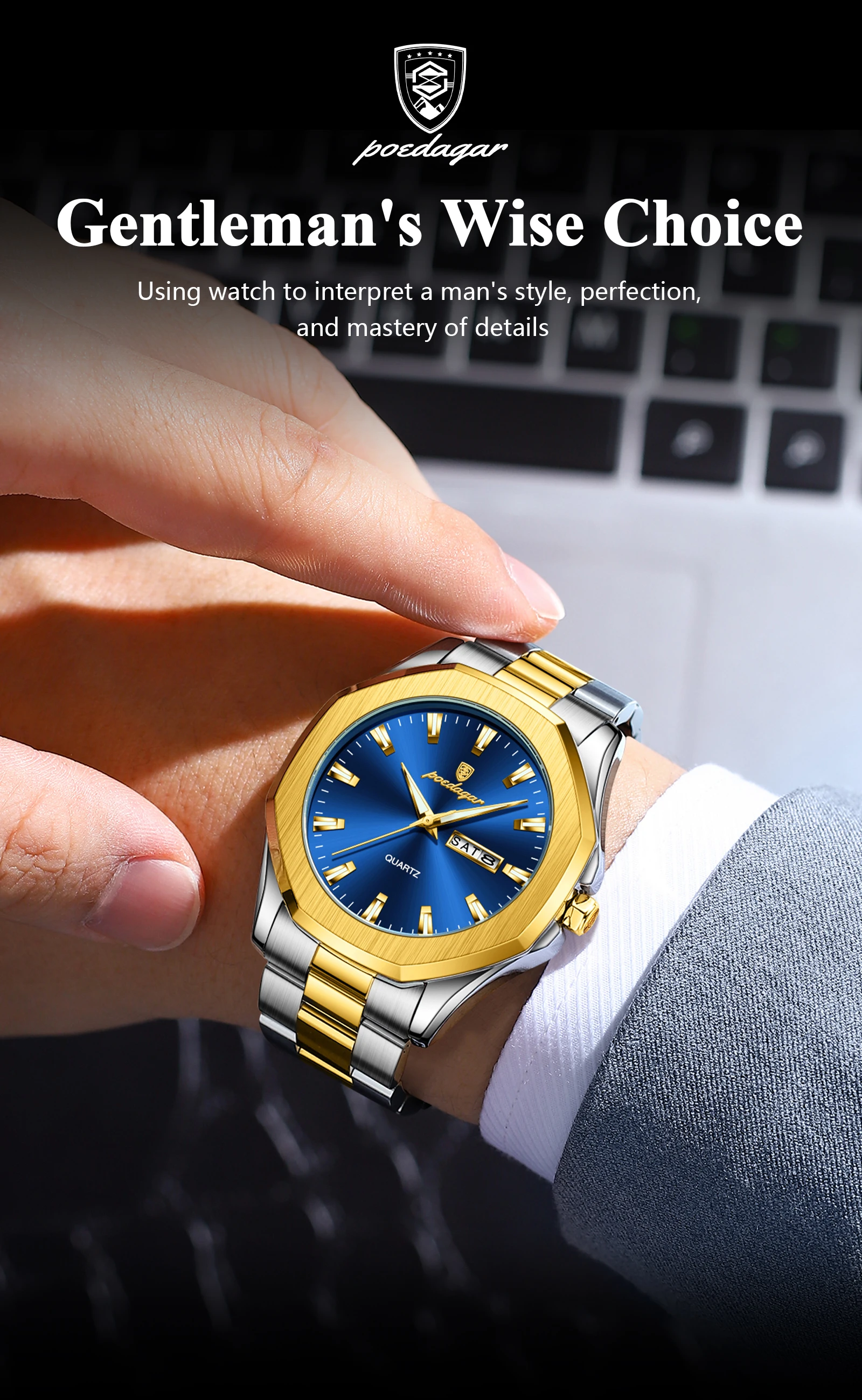 POEDAGAR Luxury Men Wristwatch Waterproof Luminous Week Date Original Man Watch Stainless Steel Sport Quartz Men’s Watches Reloj