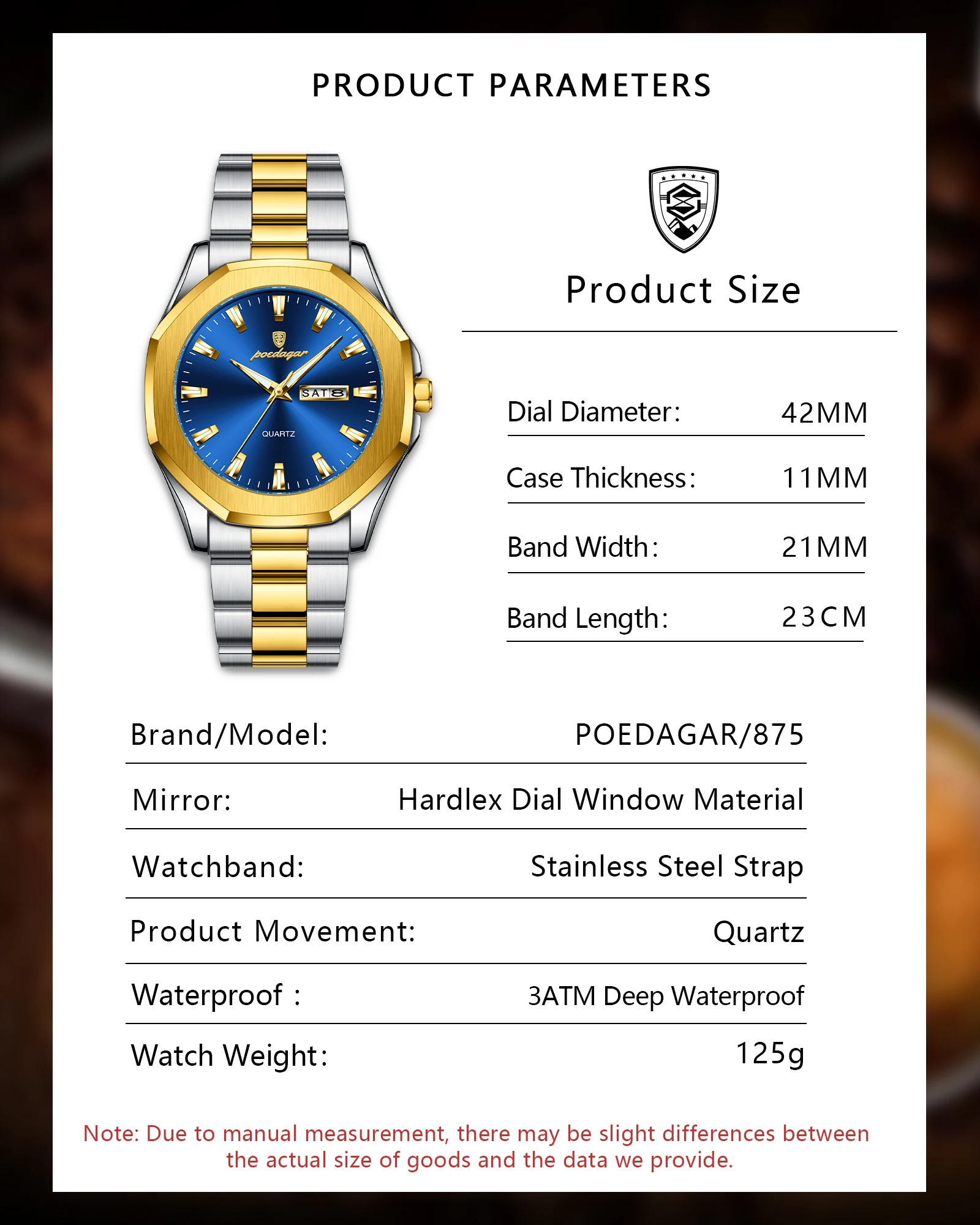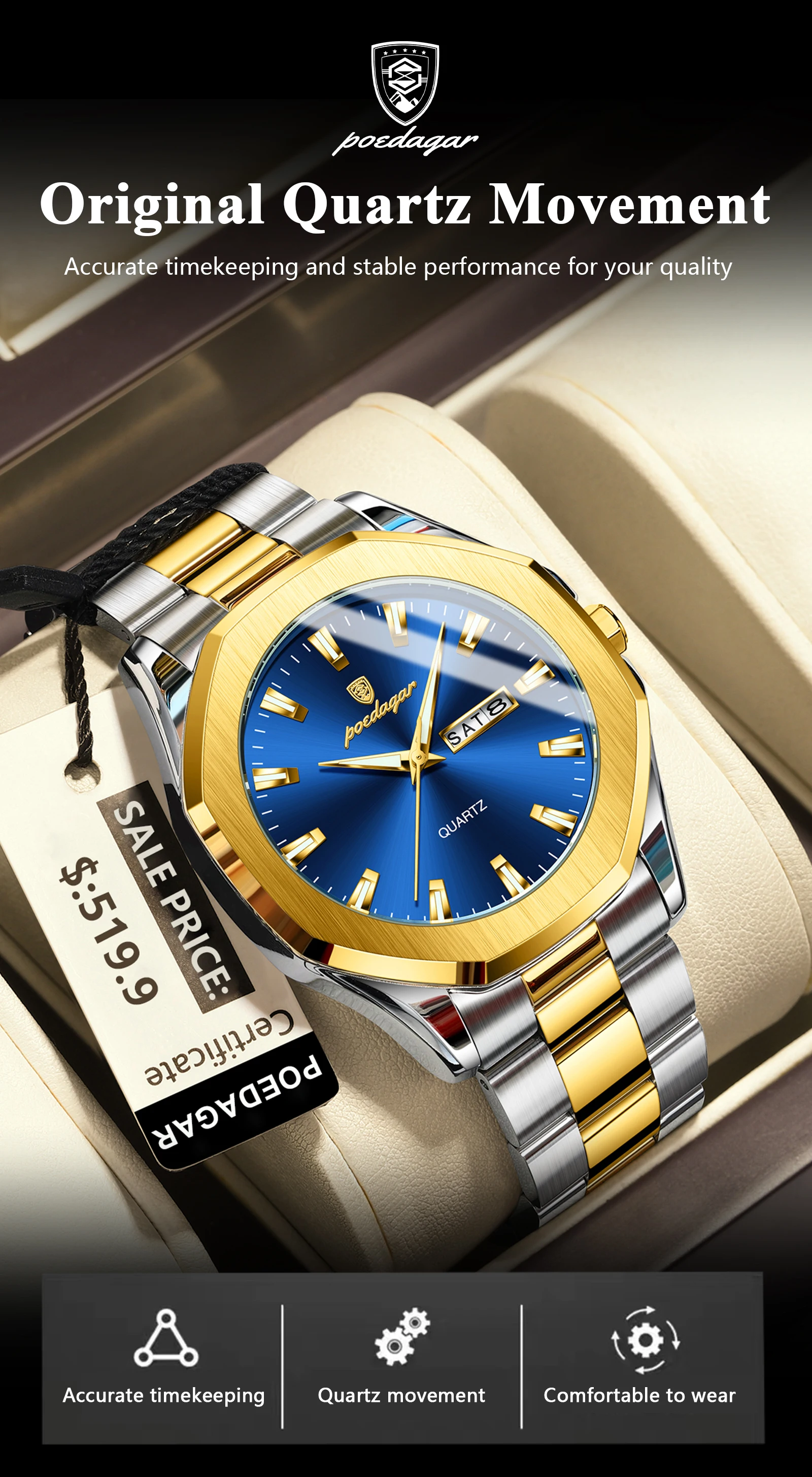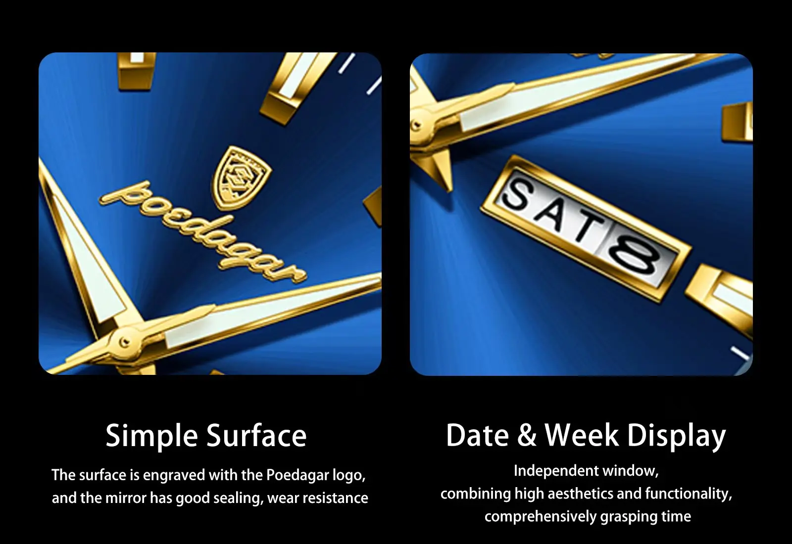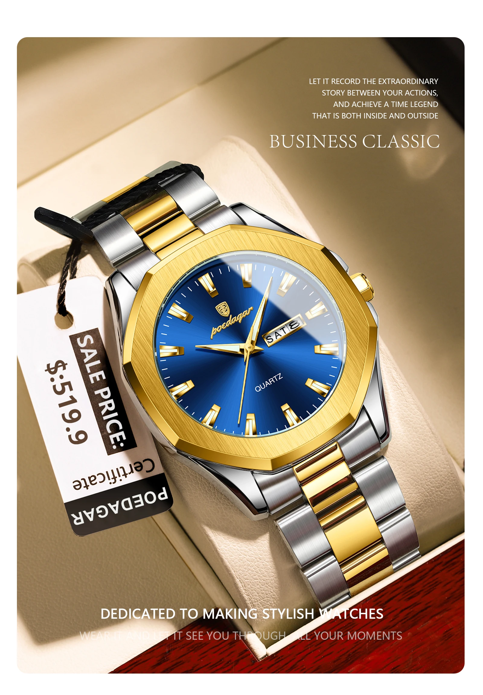 POEDAGAR Luxury Men Wristwatch Waterproof Luminous Week Date Original Man Watch Stainless Steel Sport Quartz Men’s Watches Reloj