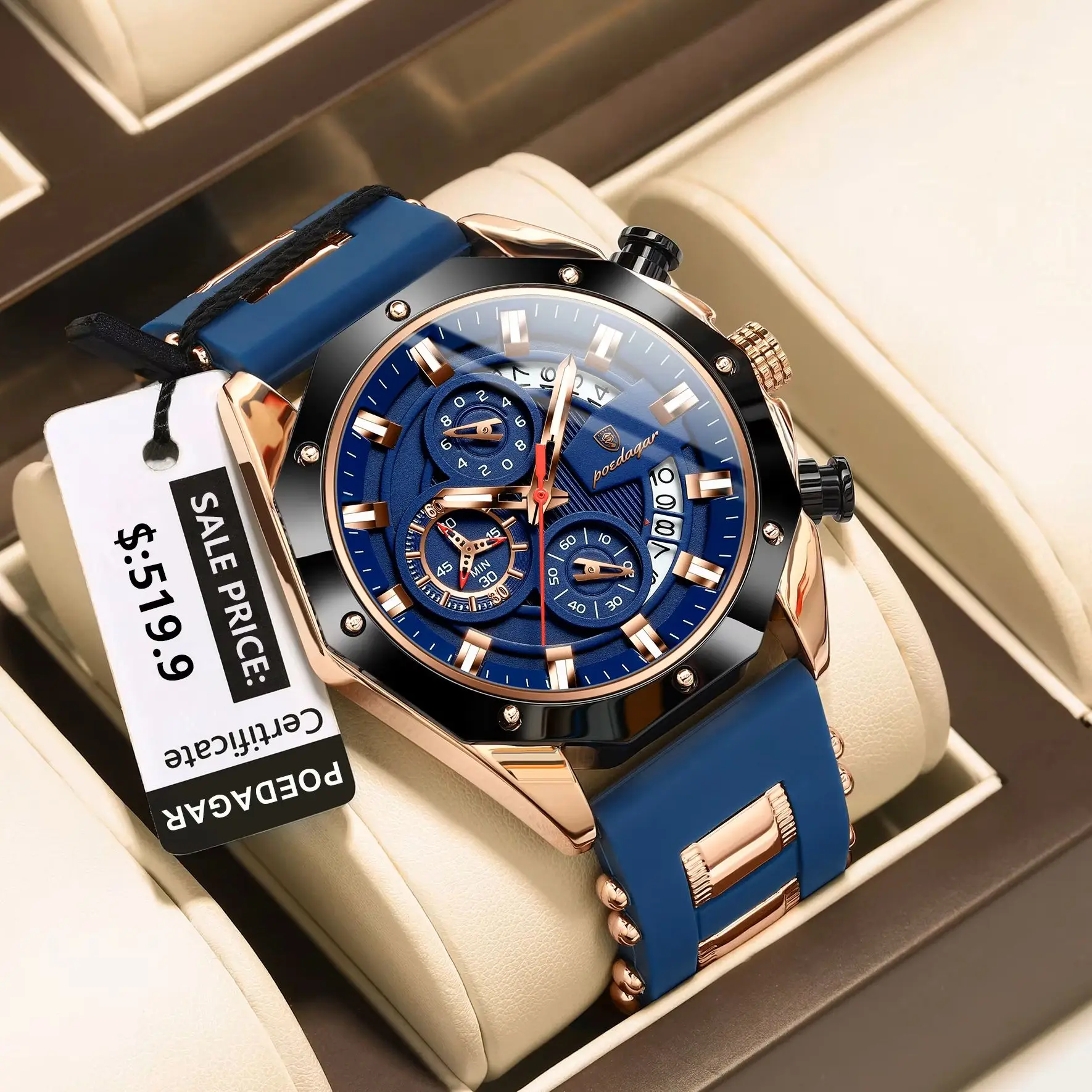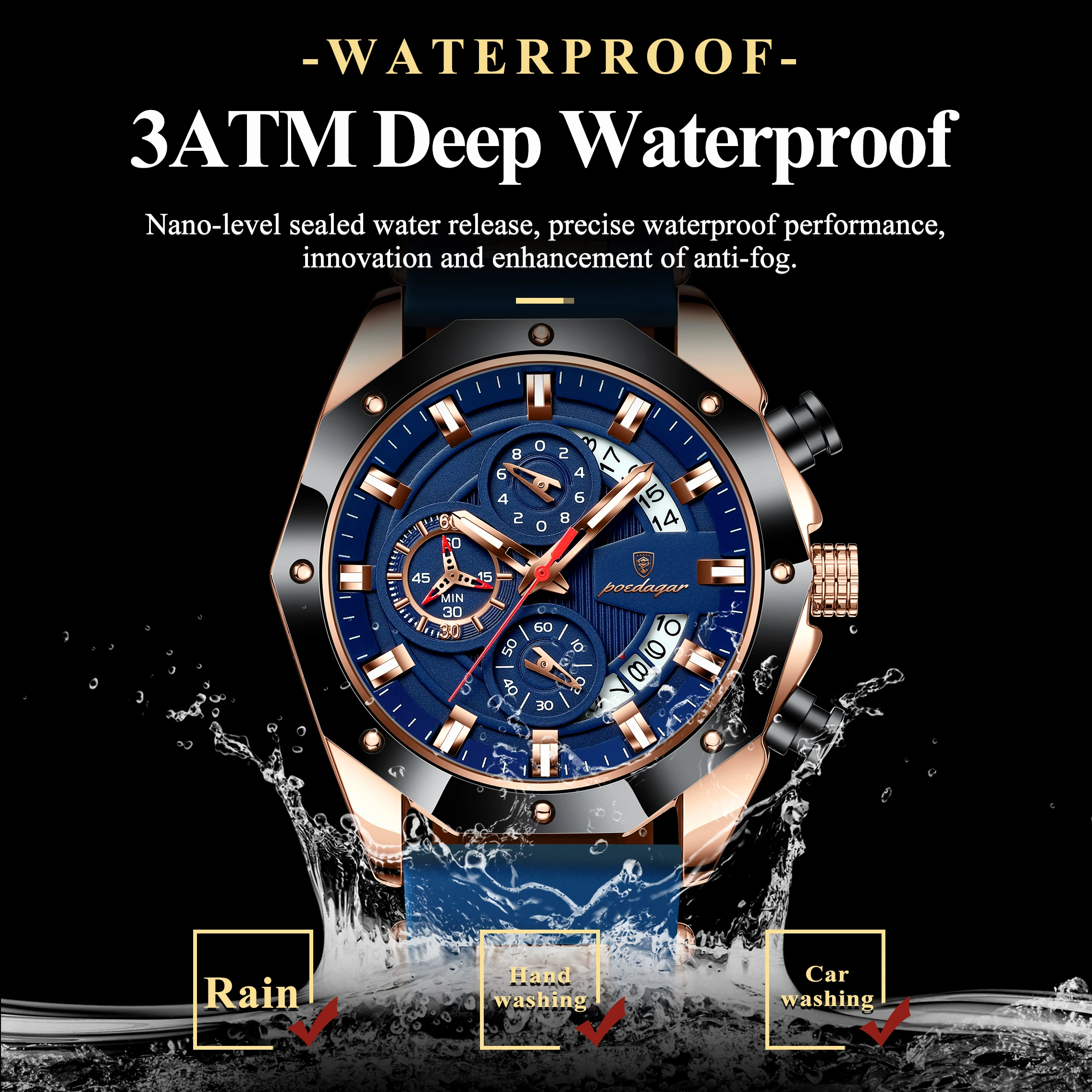 POEDAGAR Luxury Military Men Watch Waterproof Luminous Date Sport Man Wristwatch Chronograph Silicone Strap Quartz Men’s Watches