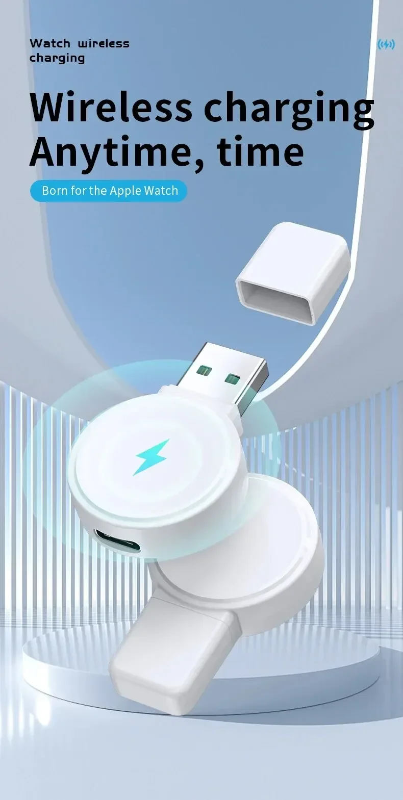 Portable Wireless Magnetic Watch USB A Charger for Apple Watch 9 8 7 SE Ultra Type C Fast Charging Dock for iWatch 6 5 4 3 2