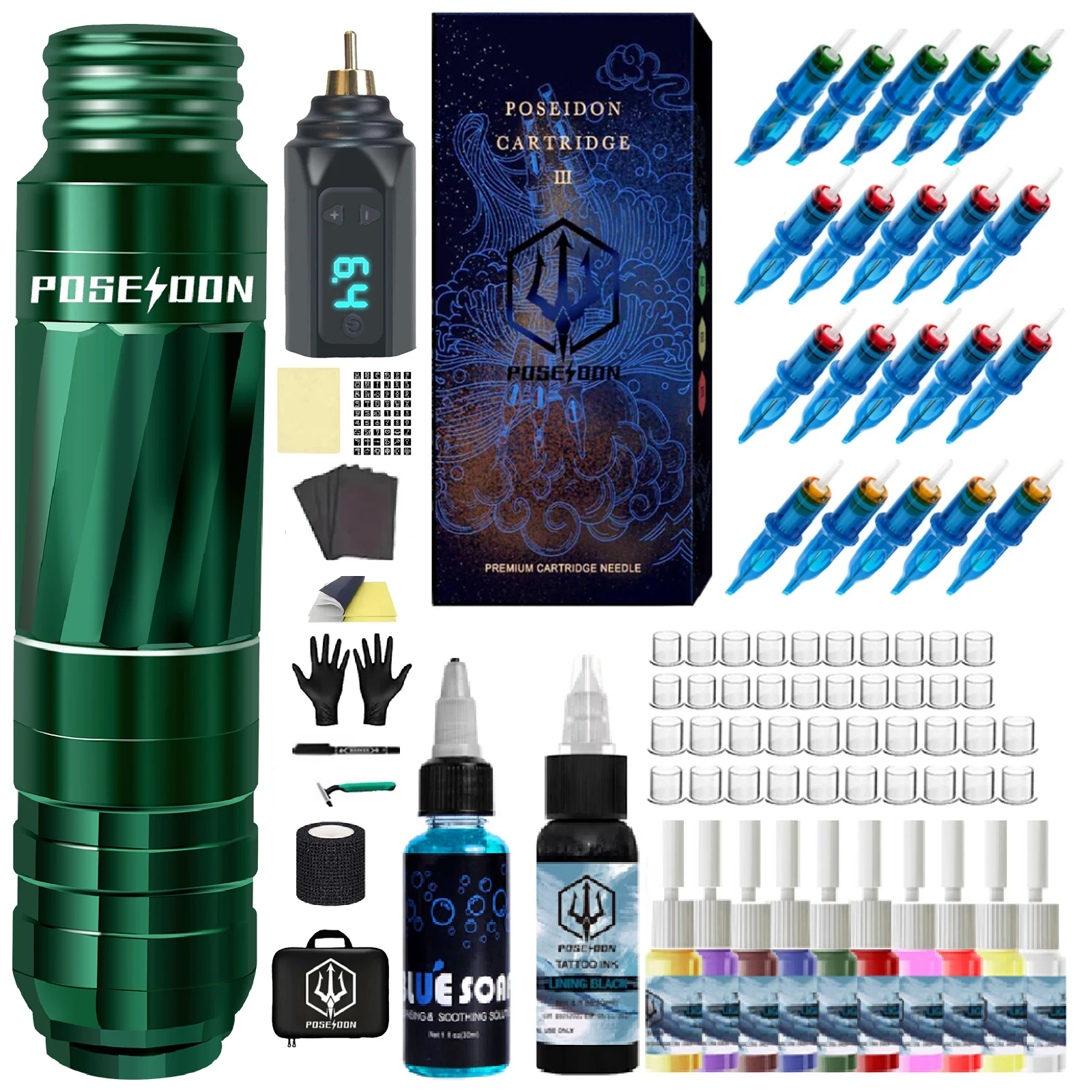 POSEIDON Tattoo Pen Kit Tattoo Kit With Power Supply RCA Interface Tattoo Gun Kit Tattoo Rotary Electric Pen for Tattoo Artists