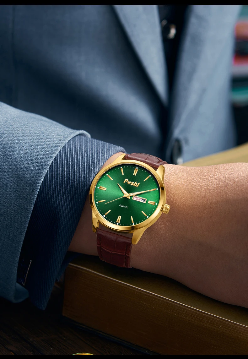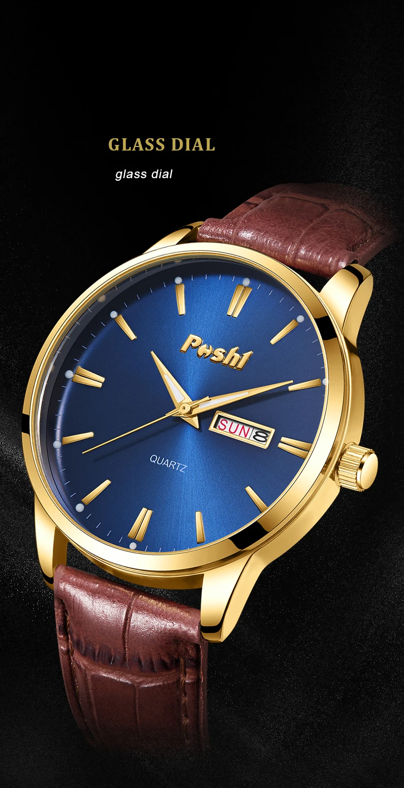 POSHI Original Brand Men Watches Luxury Leahter Strap Casual Wristwatch for Man Fashion Quartz Watch with Date Week Waterproof