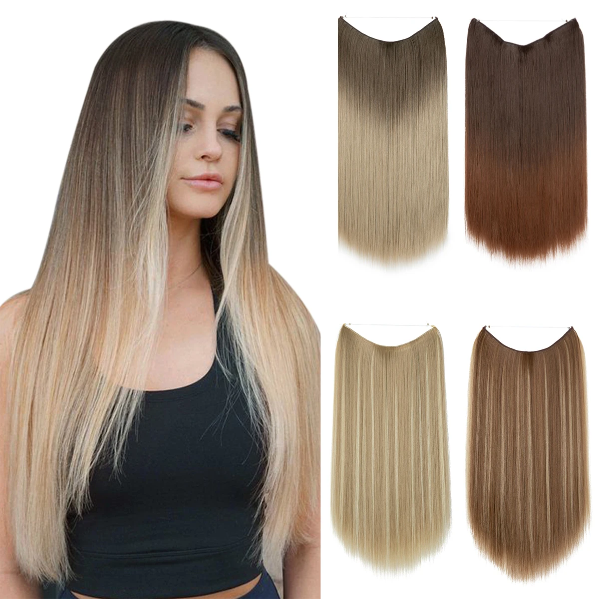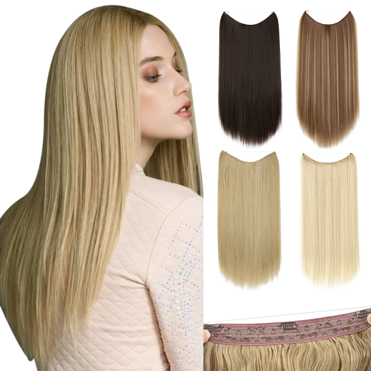 Premium Heat Resistant Synthetic Invisible Wire Hair Extensions With Clips Hairpieces Long Natural Straight Fake Hair For Woman