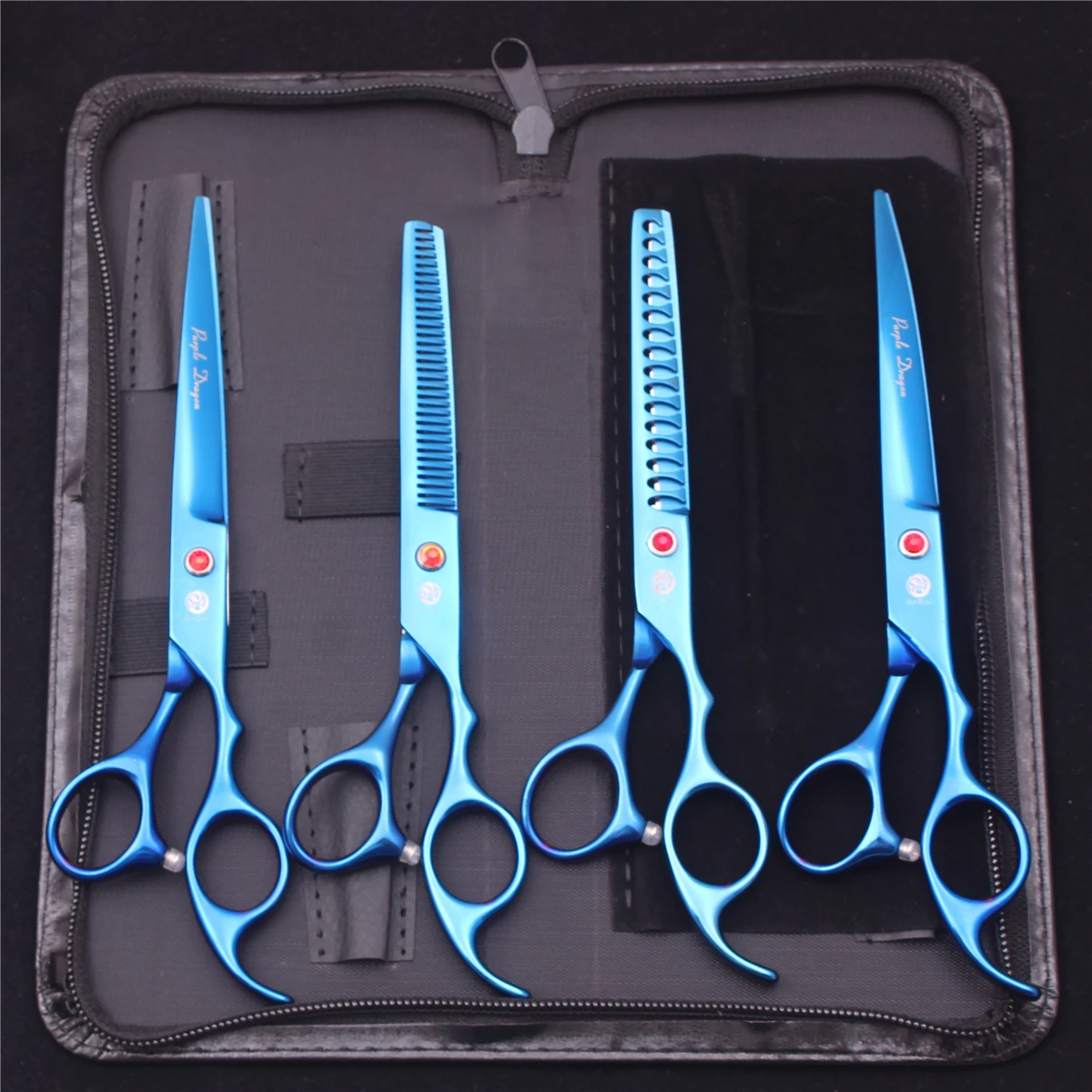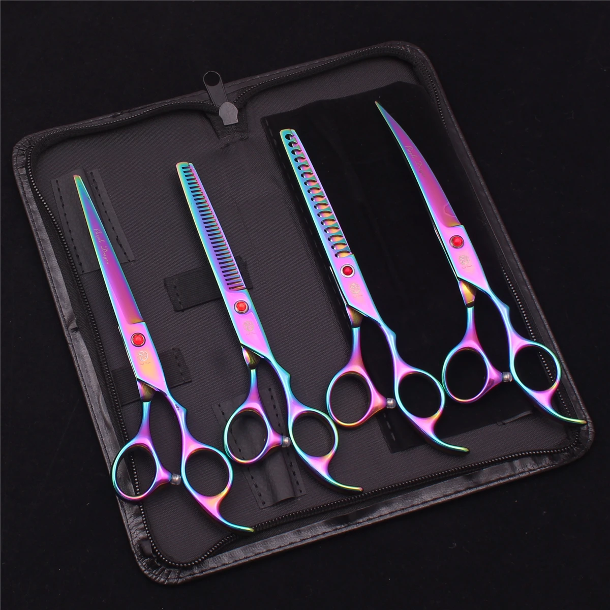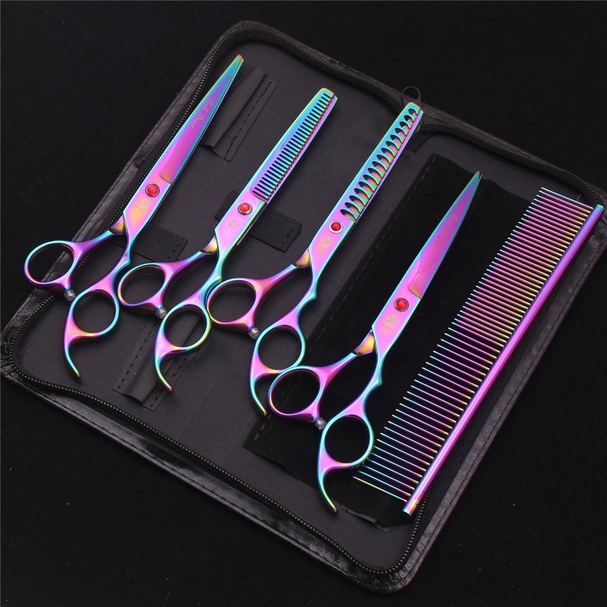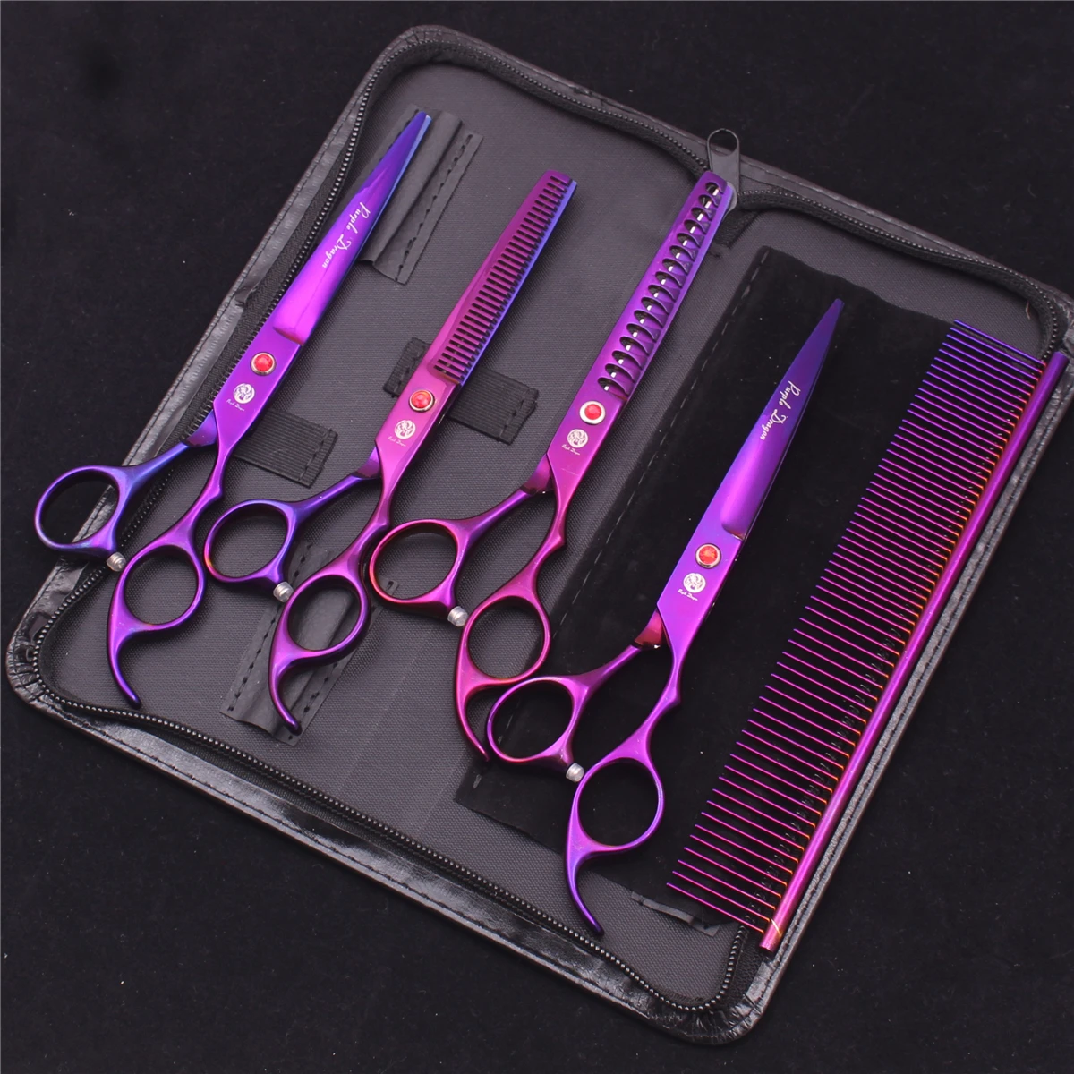 Purple Dragon Pet Scissors 7” Stainless Dog Groomming Scissors Kit Straight Shears Thinning Shears Chunker Curved Shears Z3003