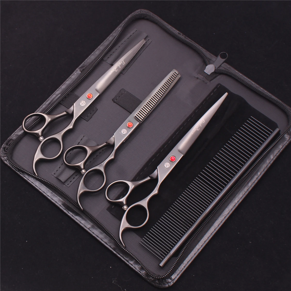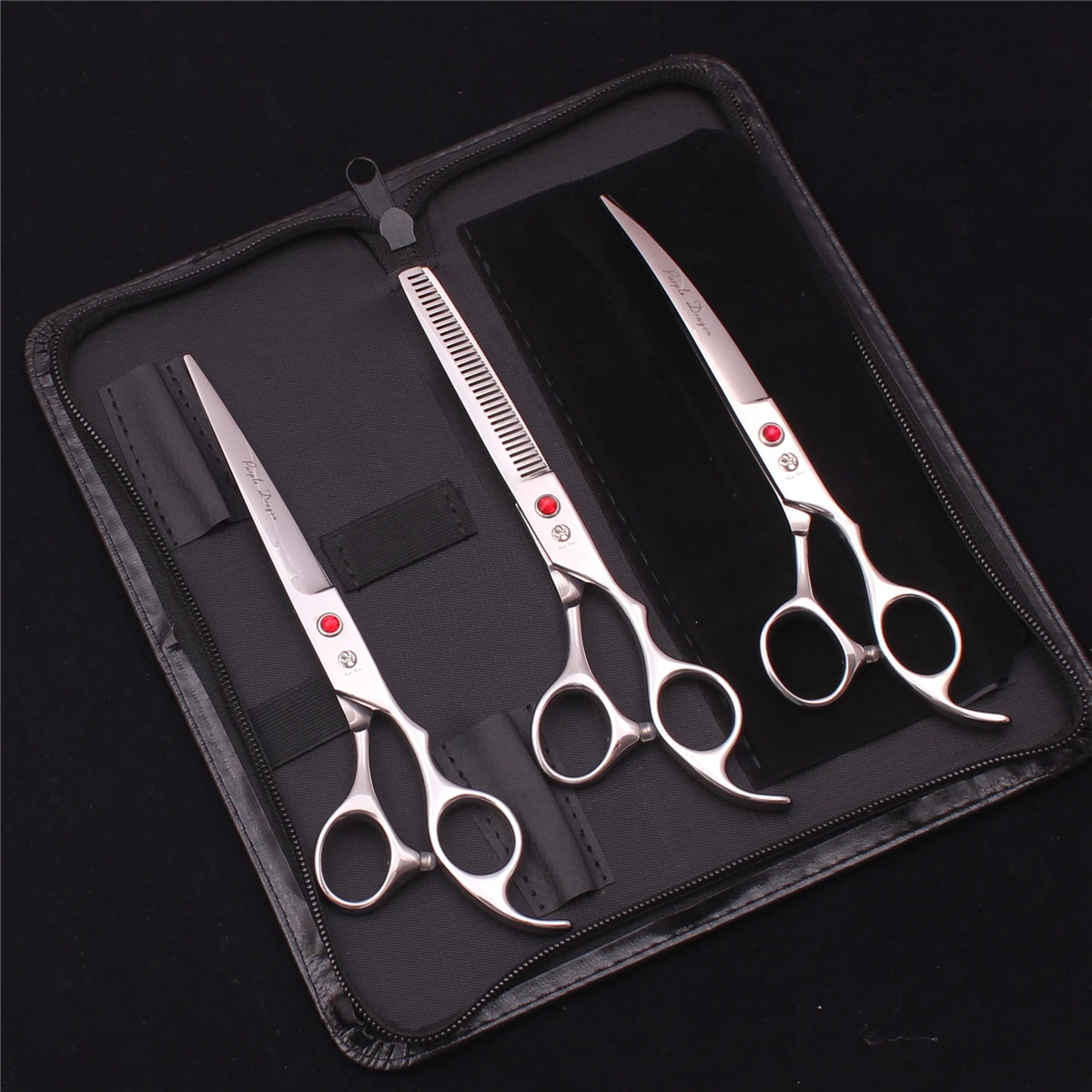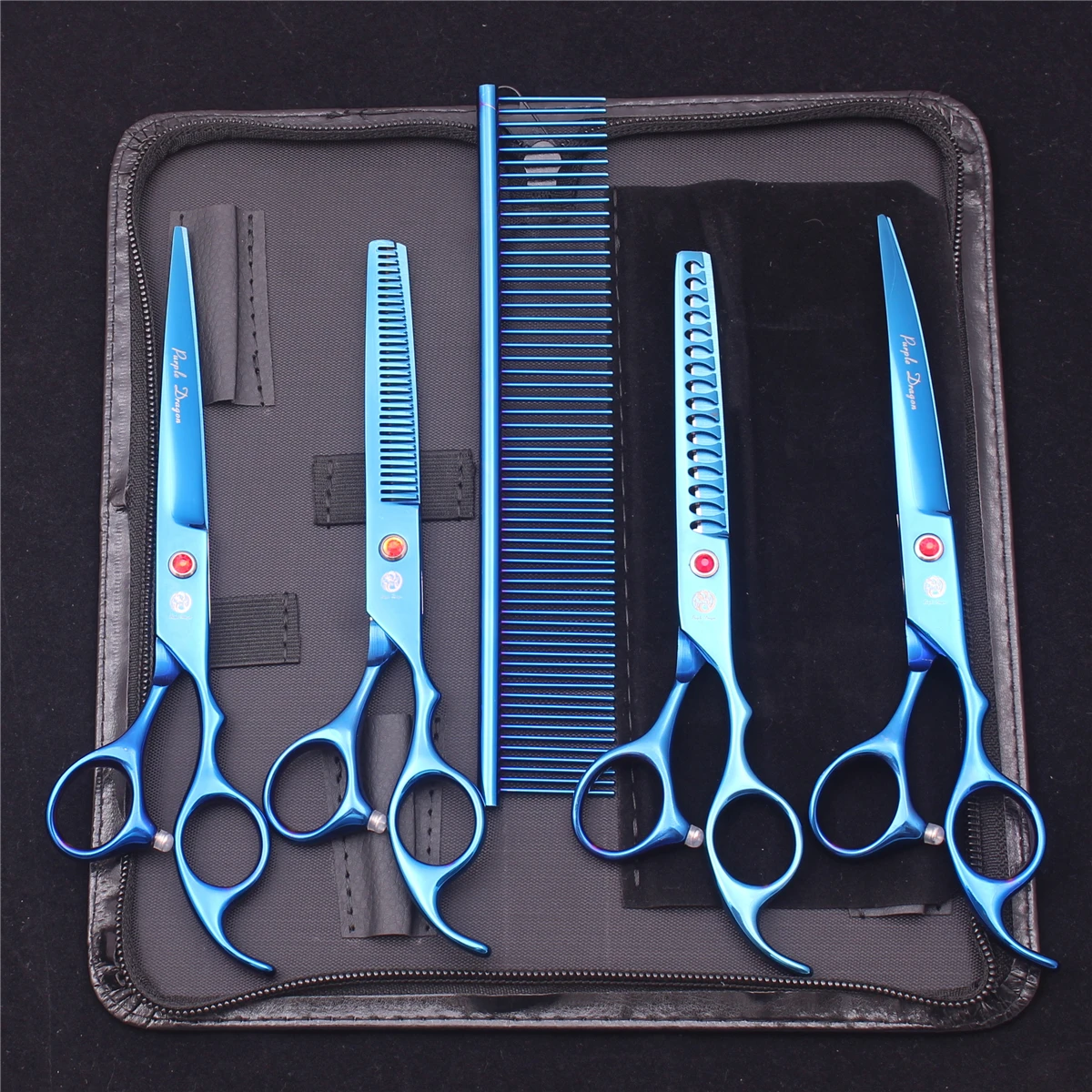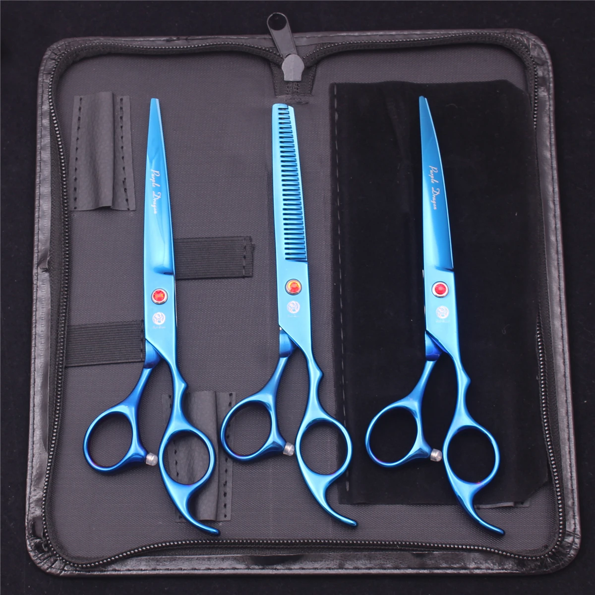 Purple Dragon Pet Scissors 7” Stainless Dog Groomming Scissors Kit Straight Shears Thinning Shears Chunker Curved Shears Z3003