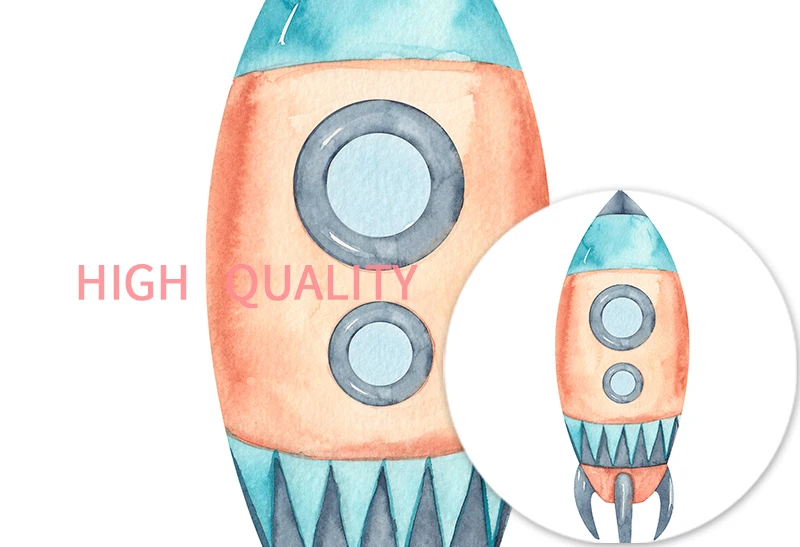 Rainbow Rocket Airplane Hot Air Balloon Wall Art Travel Nursery Posters Kids Canvas Print Decorative Paintings Baby Room Picture