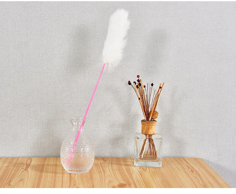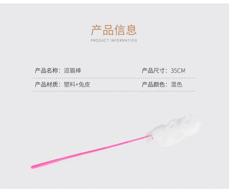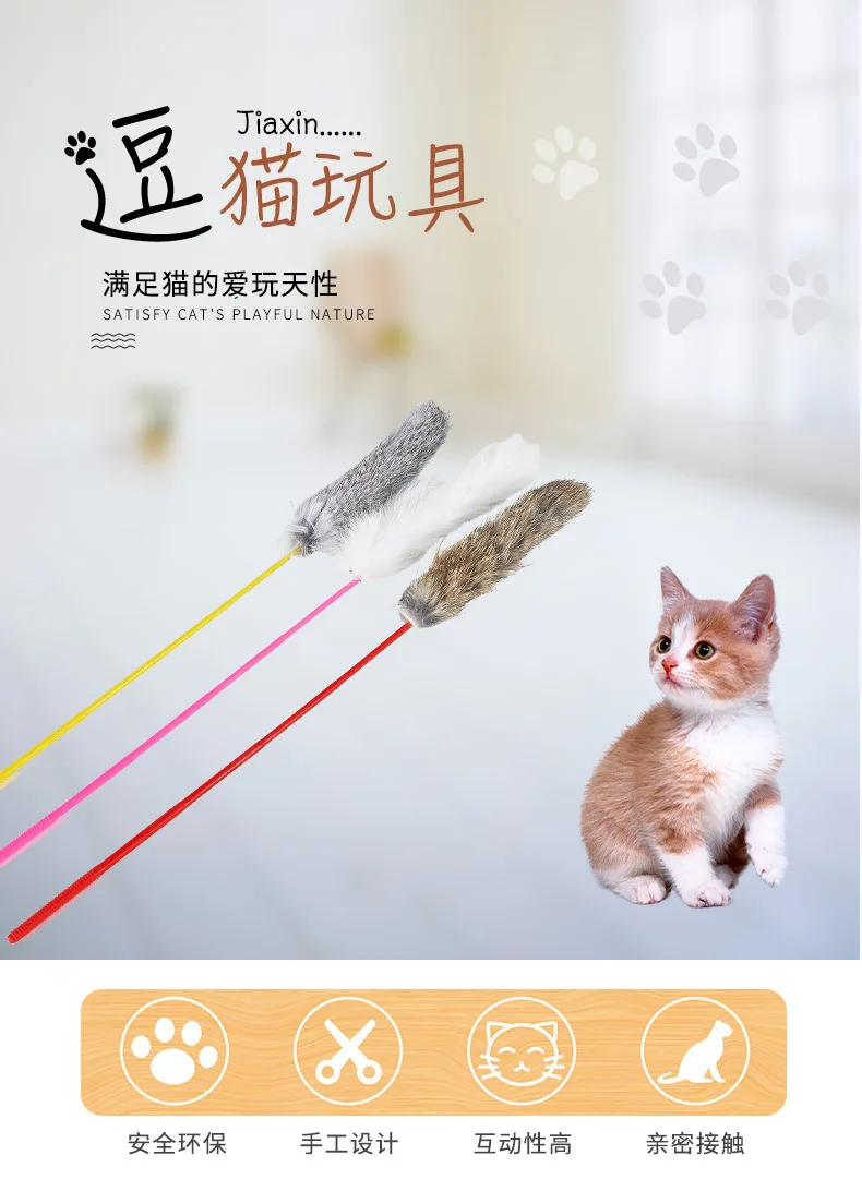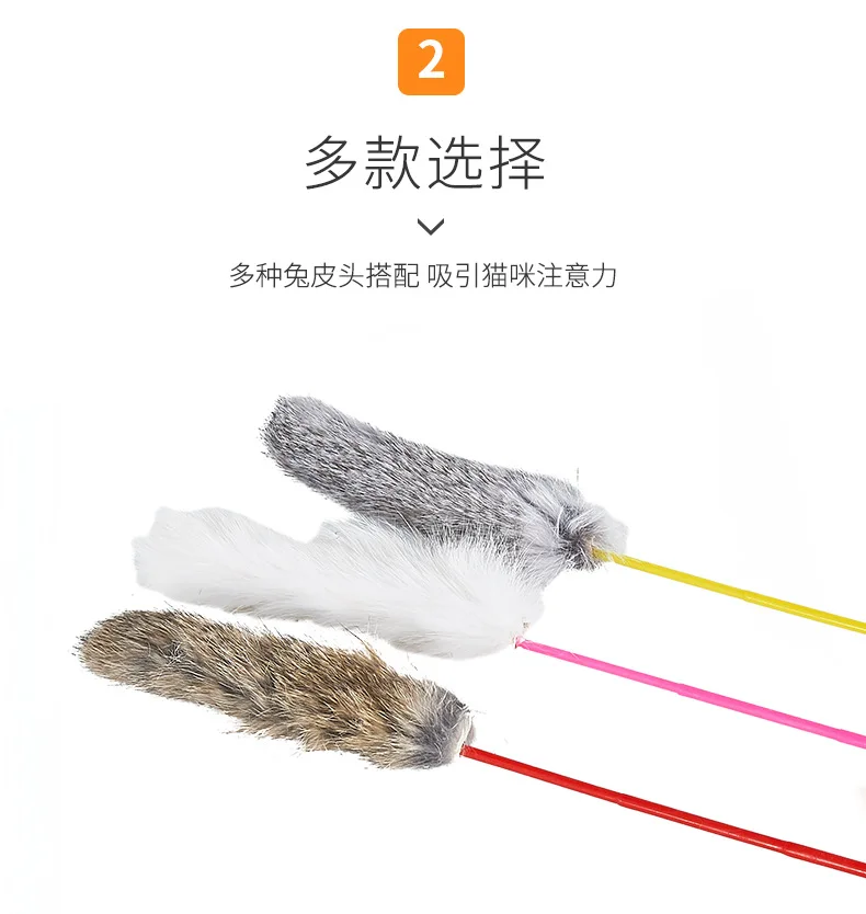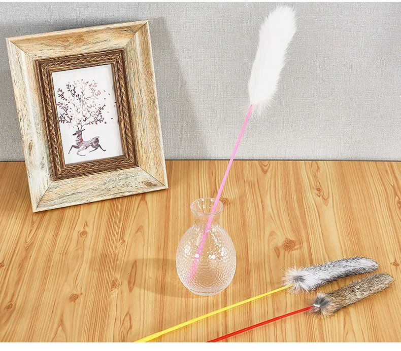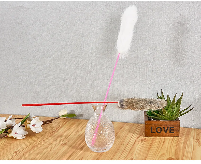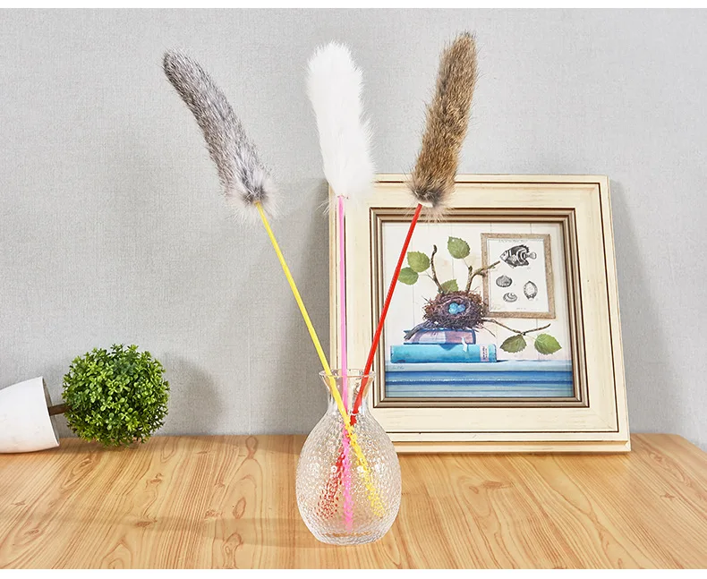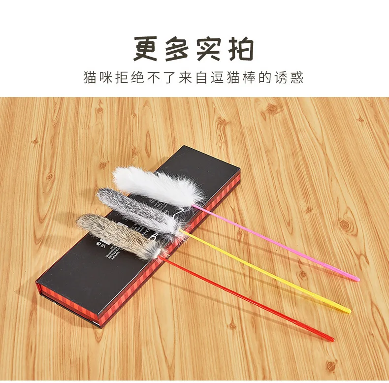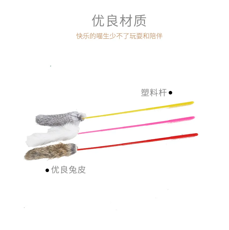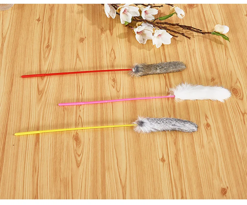 Random Color Tease Cat Stick Faux Rabbit Fur Pompom Plush Pet Interactive Stick Cat Playing Training Toys Pet Supplies