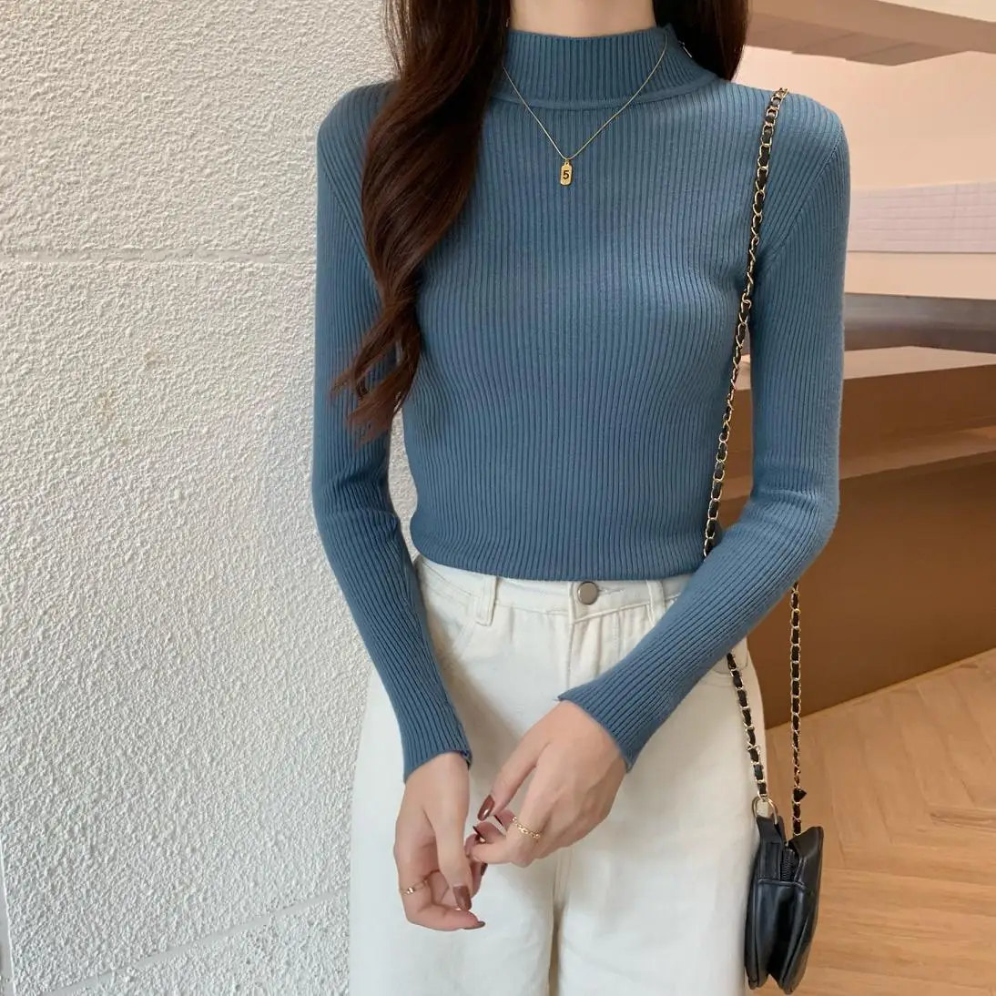 Real large-size long-sleeved sweater blouse blouse blouse blouse slim body tight half turtleneck sweater