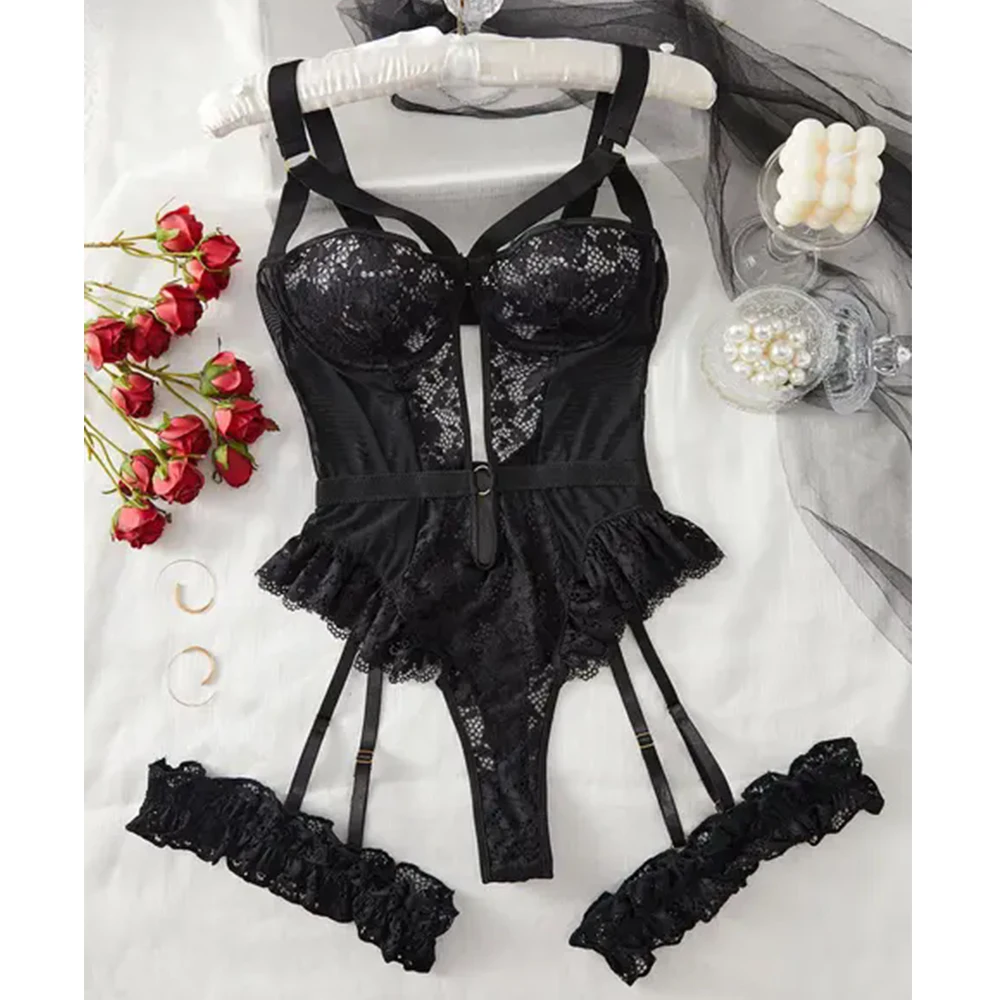 Red Floral Lace Garter Lingerie Set With Choker Women Intimates 2024 Underwire Bra And Thongs Ladies Underwear Set