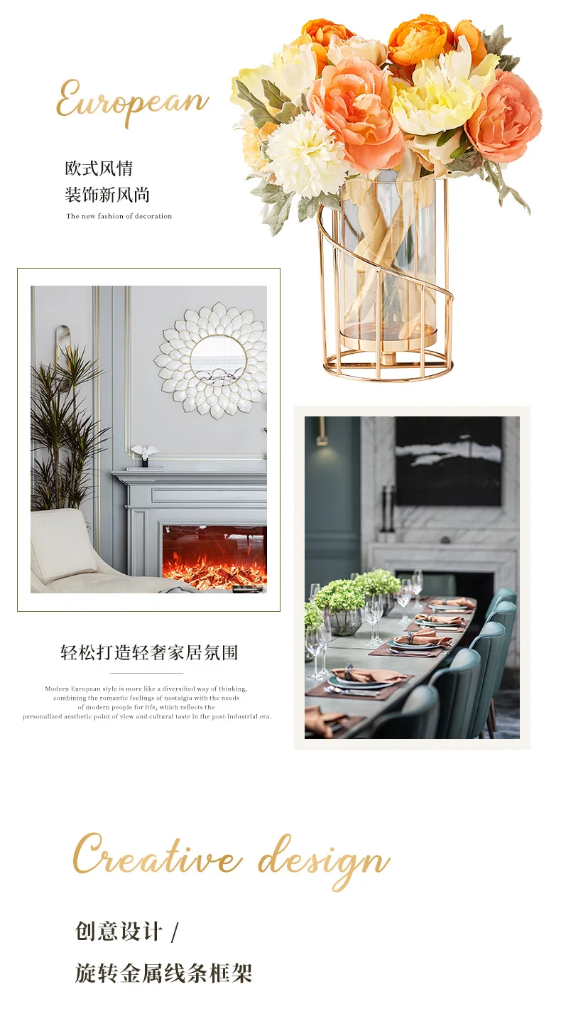 Romantic Metal Glass Candle Holder Dining Holiday Party Decoration Art Wrought Iron Wedding Table Centerpieces