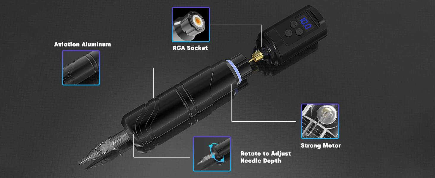 $24.28 – $41.16Price range: $24.28 through $41.16Sold By: www.AliDady.comMini Rocket Tattoo Machine Set 2Pcs Wireless Tattoo Power Supply RCA Interface Rotary Tattoo Pen Kit