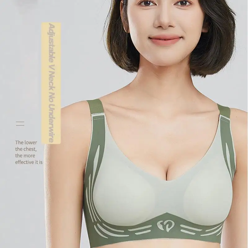 Sagging Wireless Push-up Bra Women Gathered Up Soft Support Adjustable V Neck Underwear Anti-sagging Comfortable Lift-up Bras