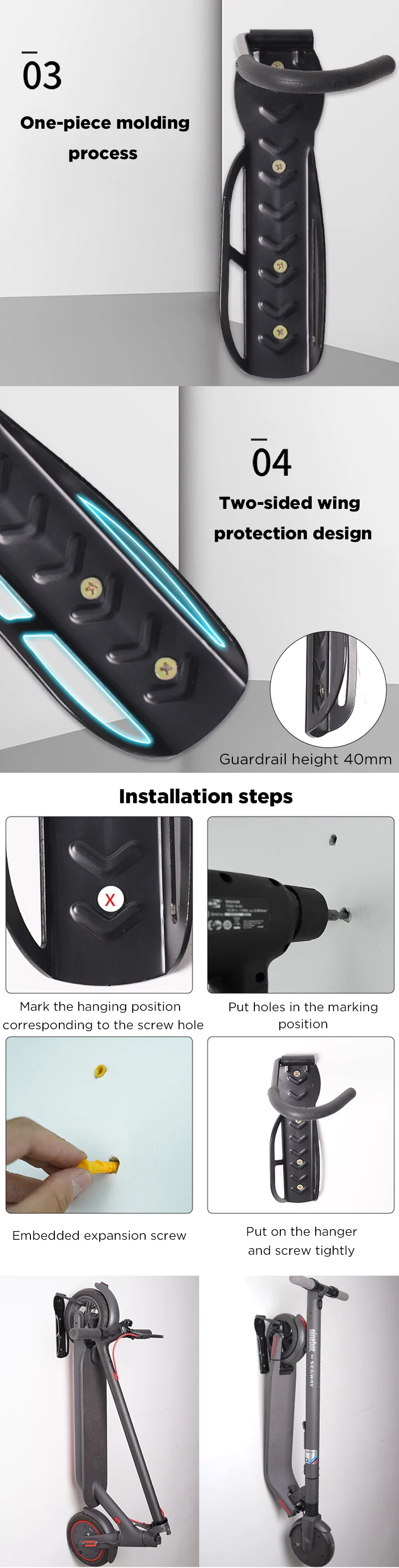 1、Almighty: This scooter wall mount is suitable for all sizes of scooters.