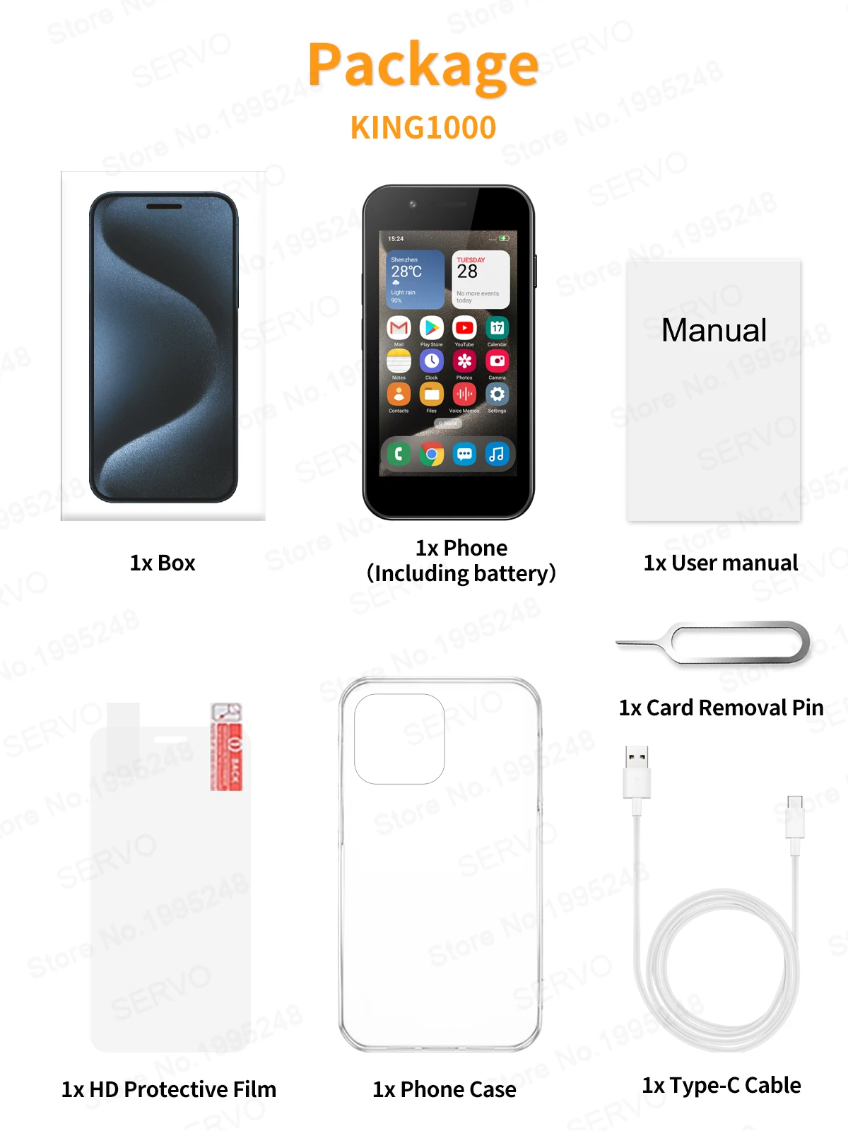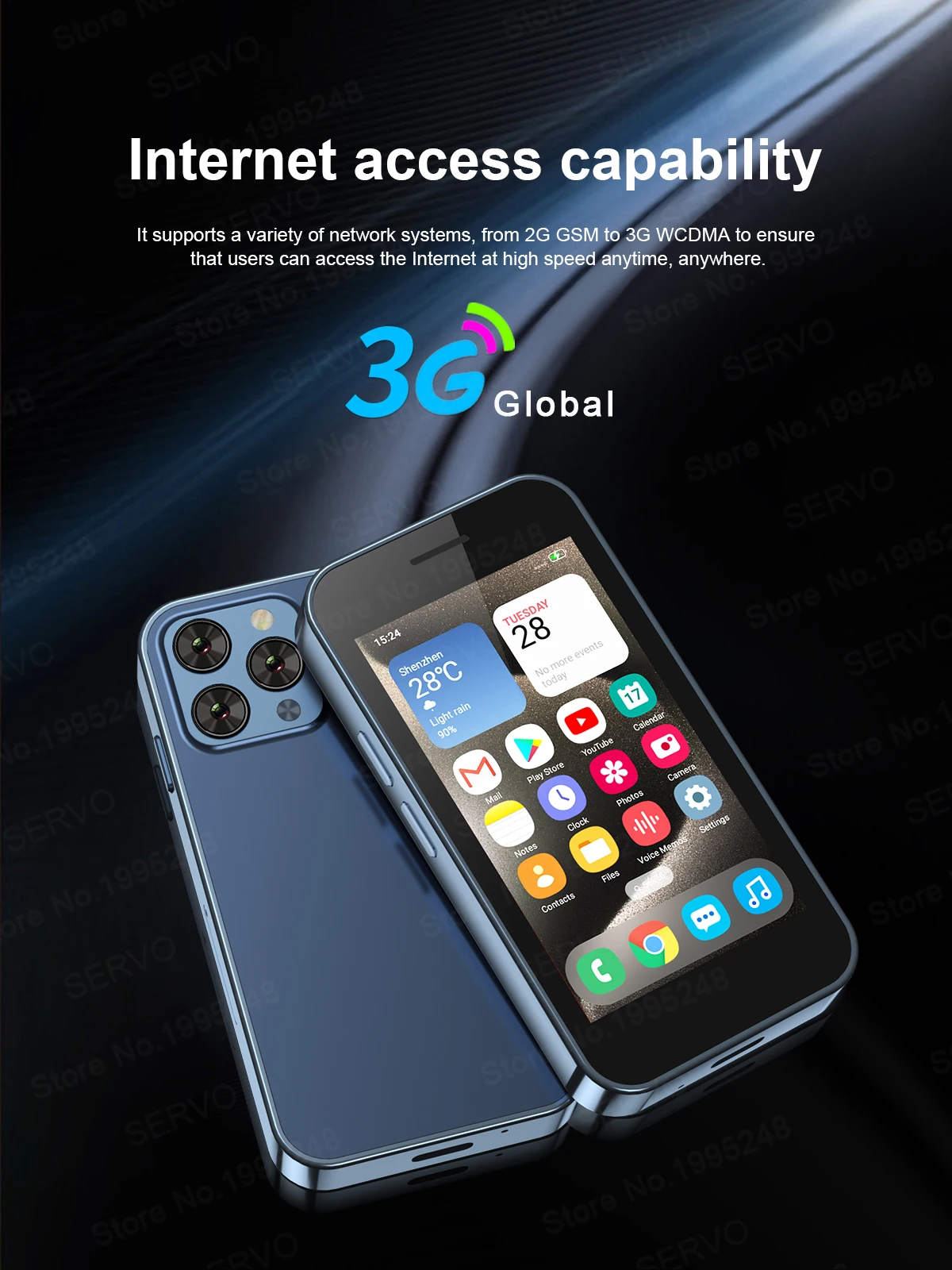 SERVO KING1000 Tiny 3.0 inch Screen Smartphone 3G NET Android OS Google Store GPS 16GB ROM Urltra-Light Compact Smart Cellphones