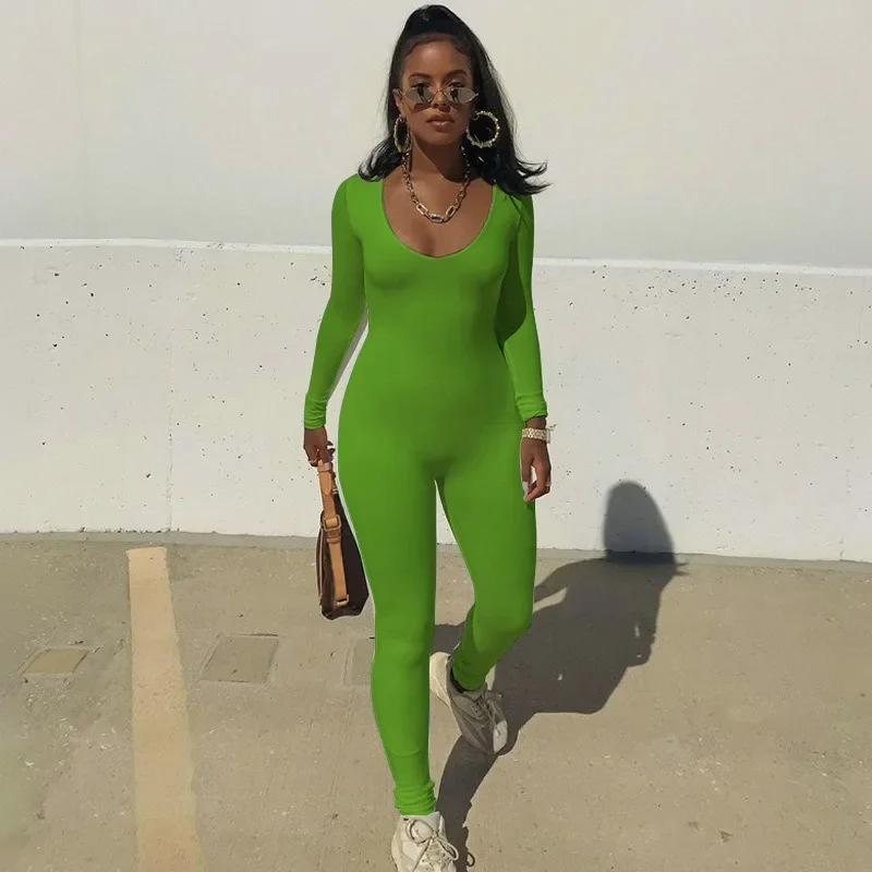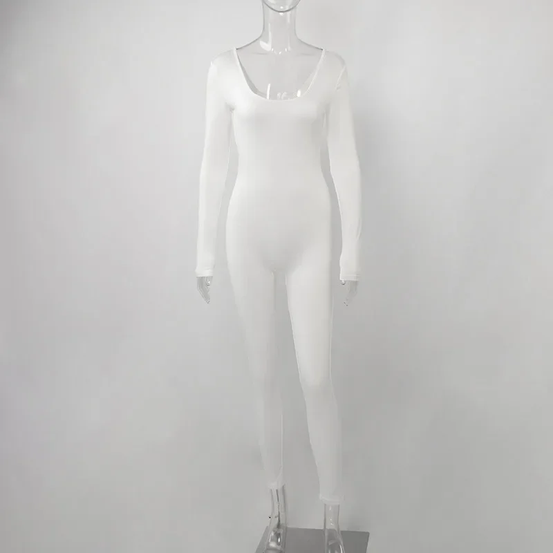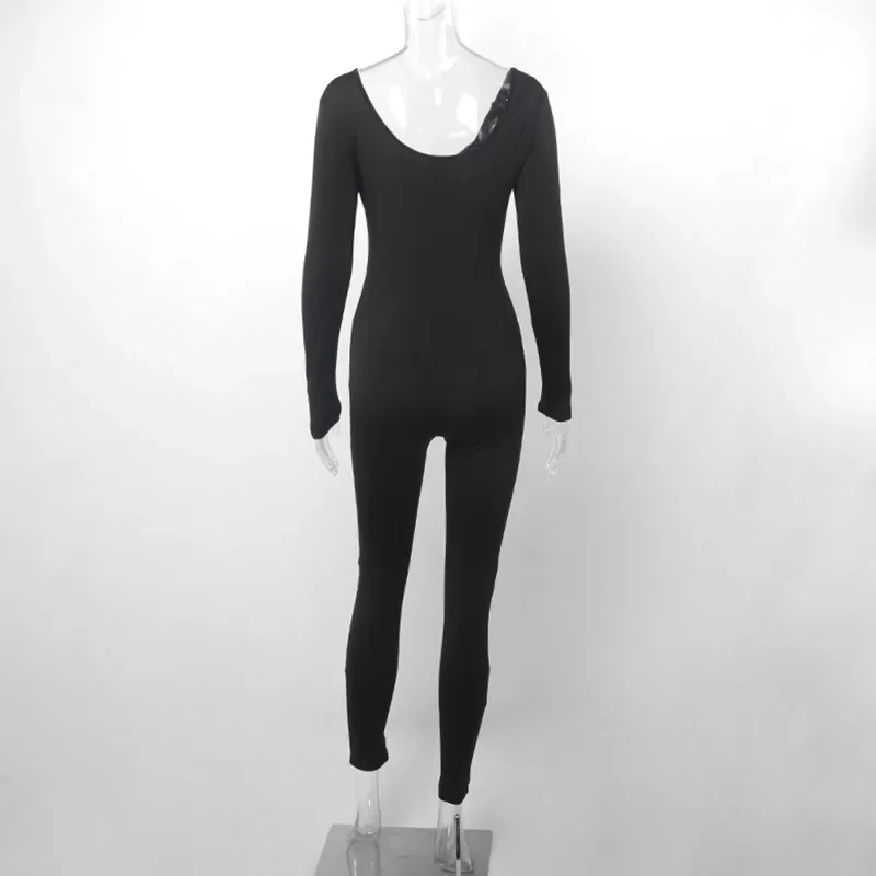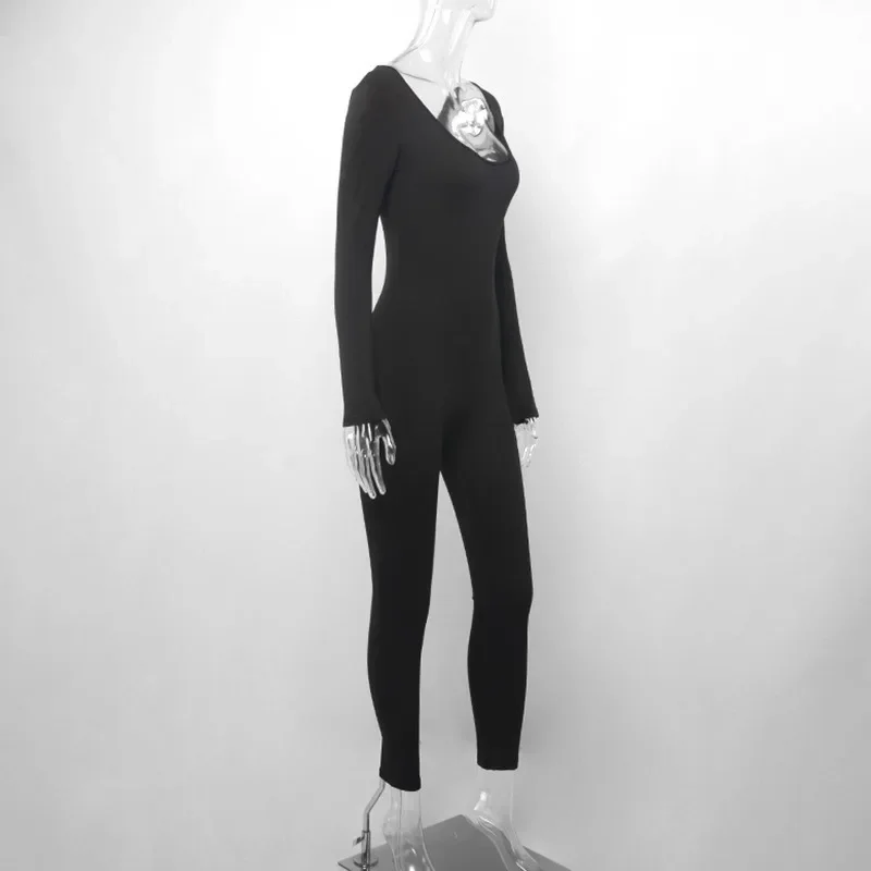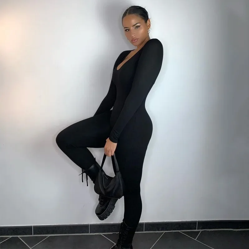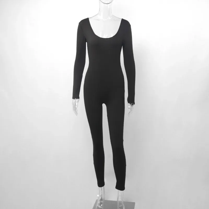 Sexy Jumpsuits Women Autumn New Solid Long Sleeve Bodycon Black Rompers Fashion Sports Streetwear Casual Skinny Overall Female