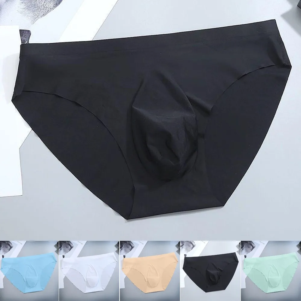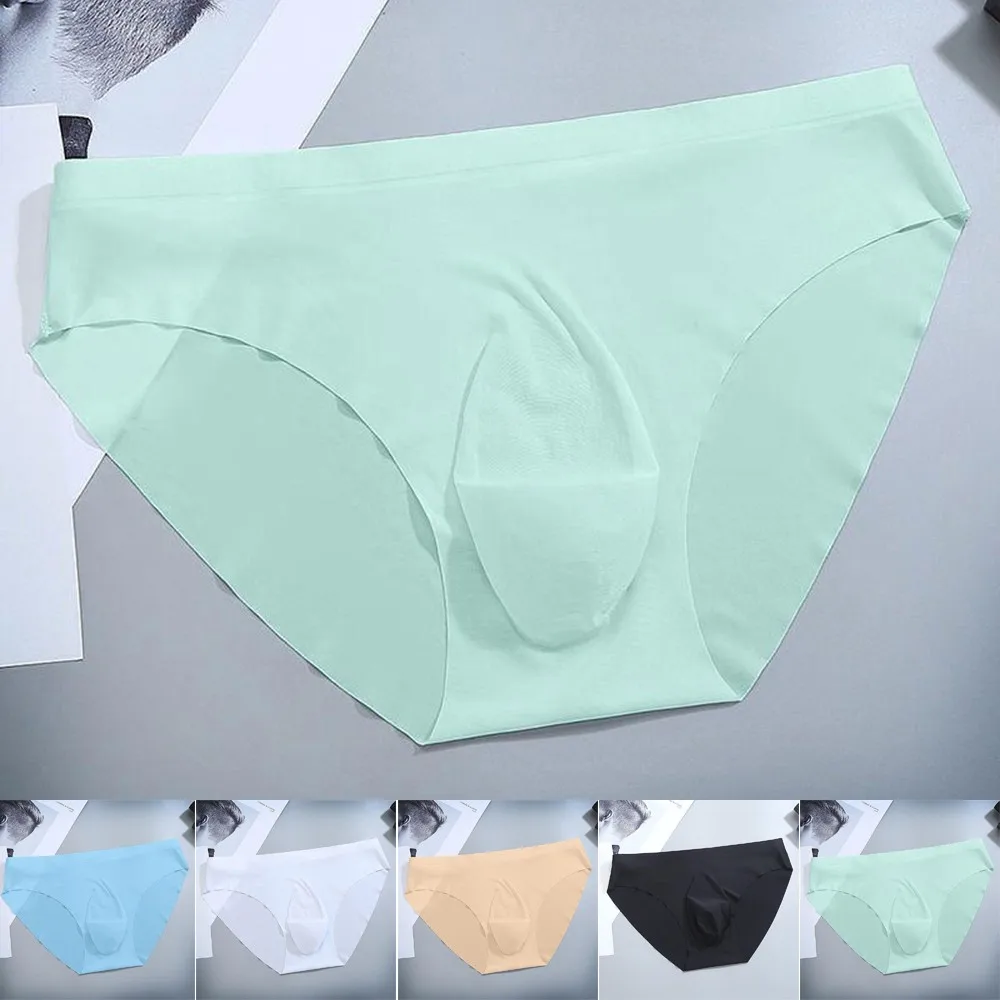 Sexy Men’s Panties Ice Cool Breathable Semi Transparent Brief Solid Color Middle Waist Underwear Pump Man Bulge Pouch Briefs