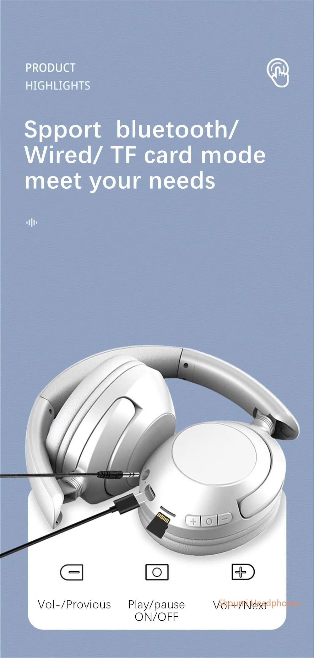 | Feature15 | wireless bluetooth large headphone |