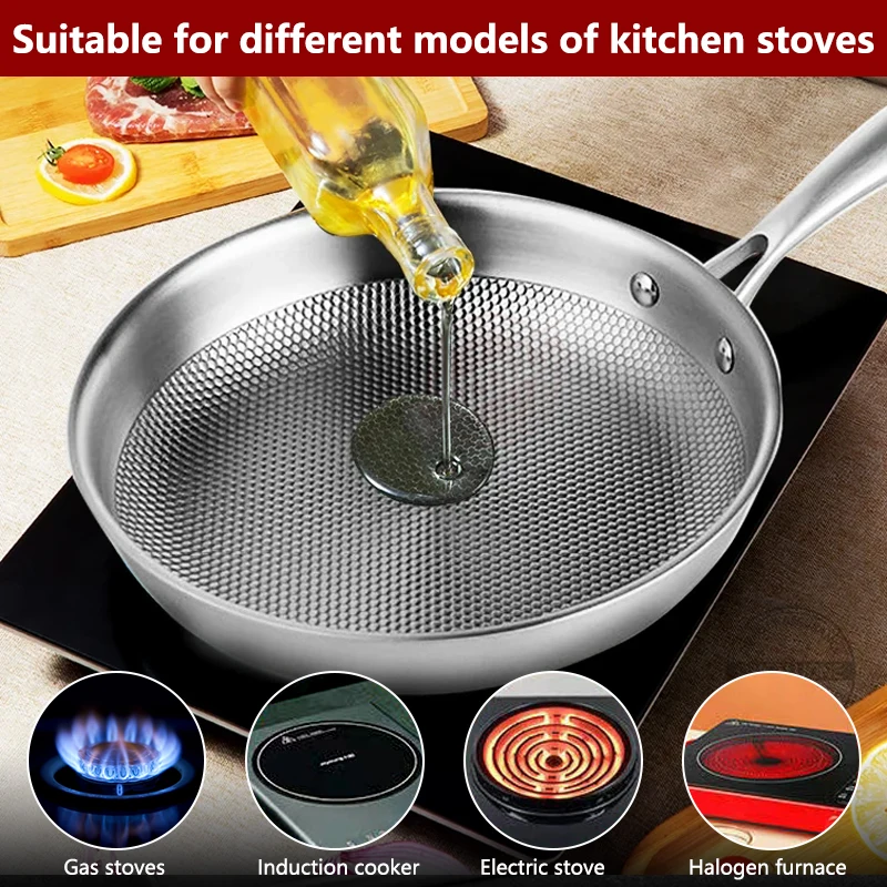 Skillet 28/30cm Frying Pans Stainless Steel Non-Stick Honeycomb Pan PFAS-Free,For Induction, Ceramic, Electric, Gas Cooktops