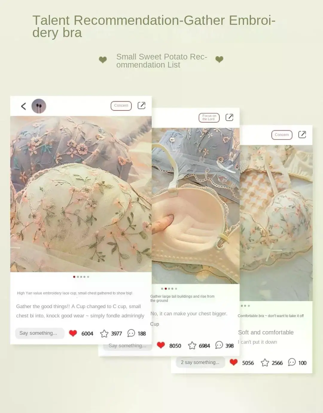 Small Breasts Gathered Women’s Underwear Flat Chest Collection Side Breast Anti-sagging No Steel Ring Embossed Women’s Bra
