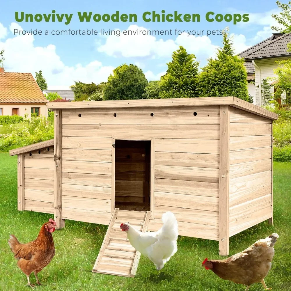 - 【Safe Material】 Made from strong and resilient fir wood coated with nontoxic lacquer, this outdoor chicken house is protected from everyday wear and tear in any kind of weather and suitable for either indoor or covered outdoor use