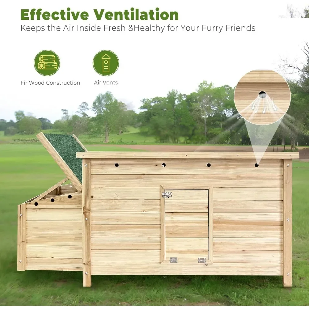 - 【Ventilated Chicken House】The vent holes help maintain good airflow inside the Chicken House, creating a healthy and safe living environment for your furry friends; Suitable for chickens, rabbits, ducks, ferrets, guinea pigs or other small animals