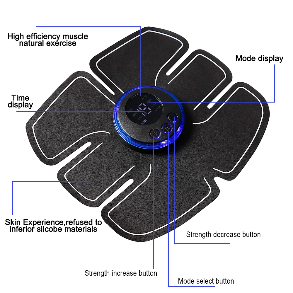 1 abdominal patch, 1 main unit, 1 instruction manual, 1 charging cable