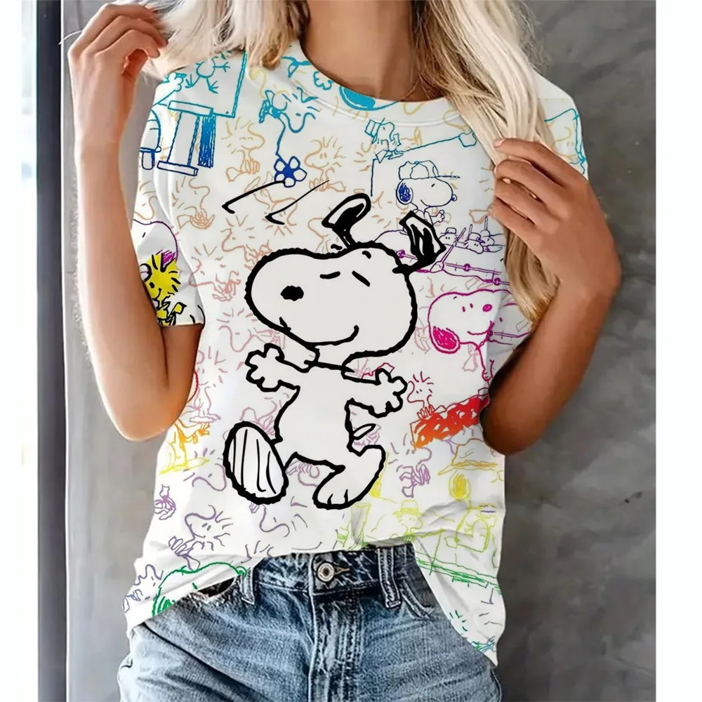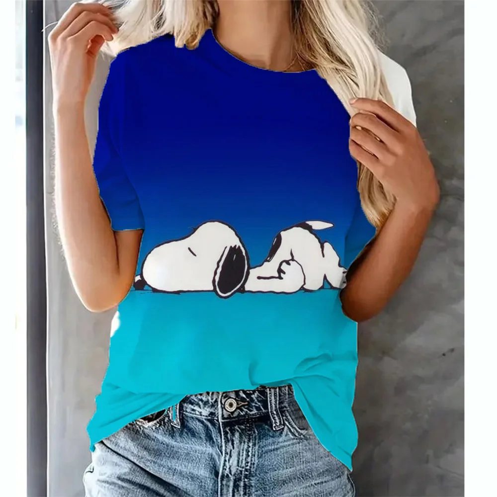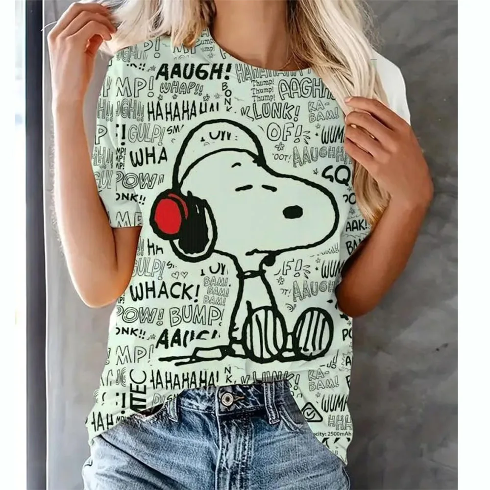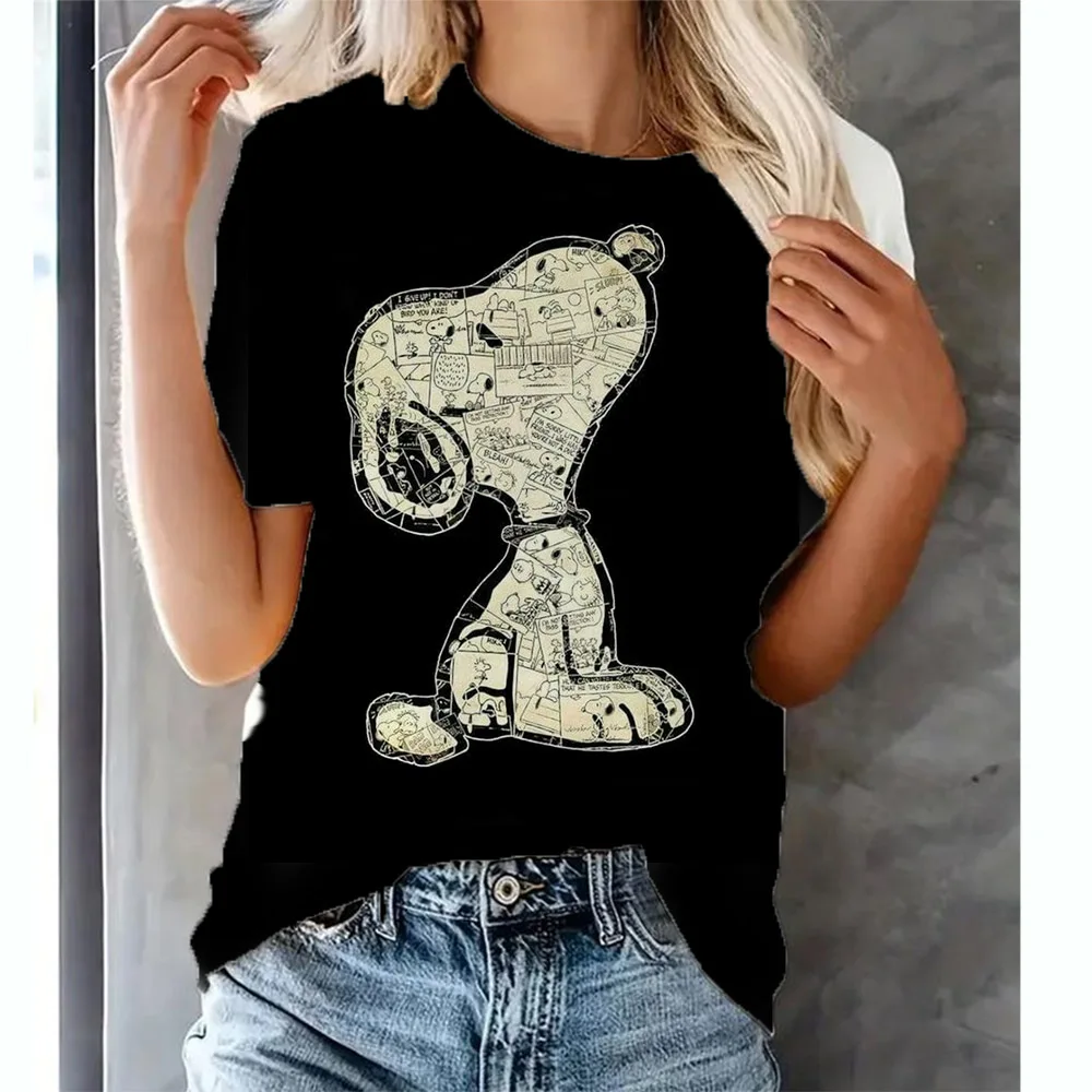 Snoopy print Women’s T-Shirt Chinese Style New Pullover For Ladies O-neck Casual Short Sleeve 2024 Fashion Streetwear Tops