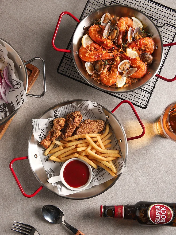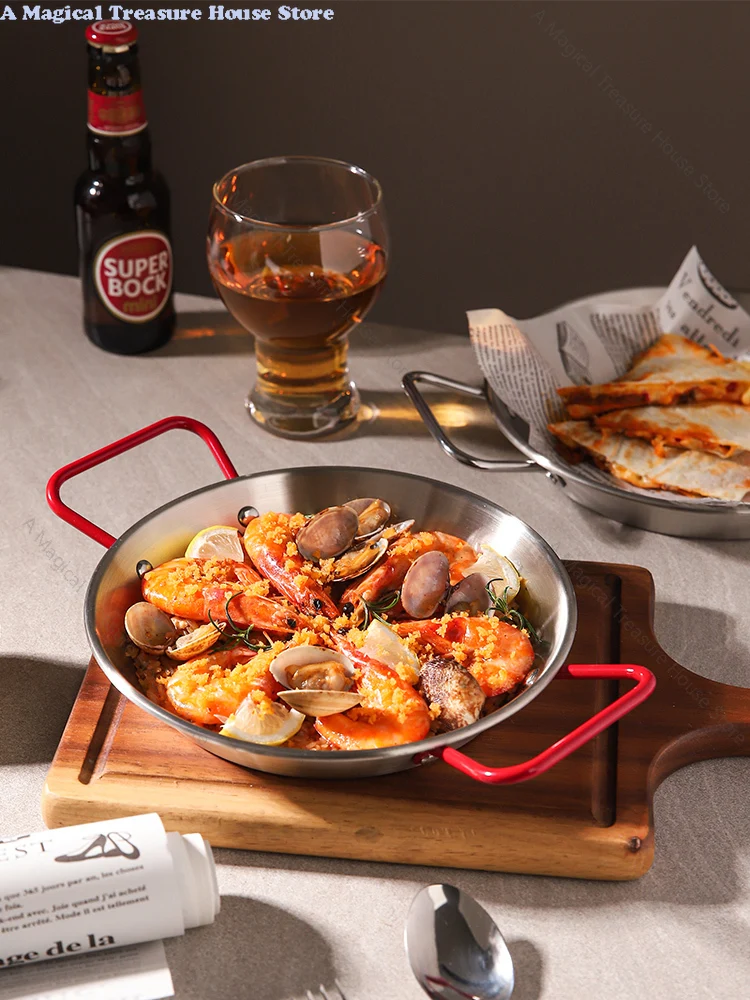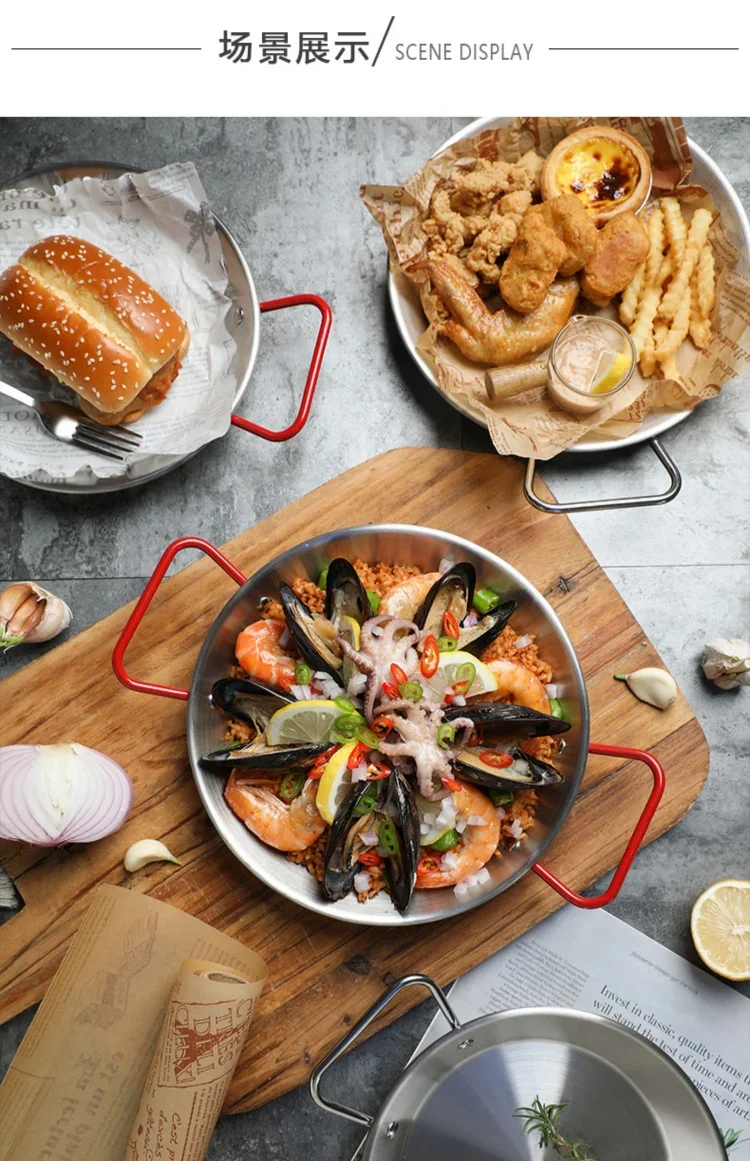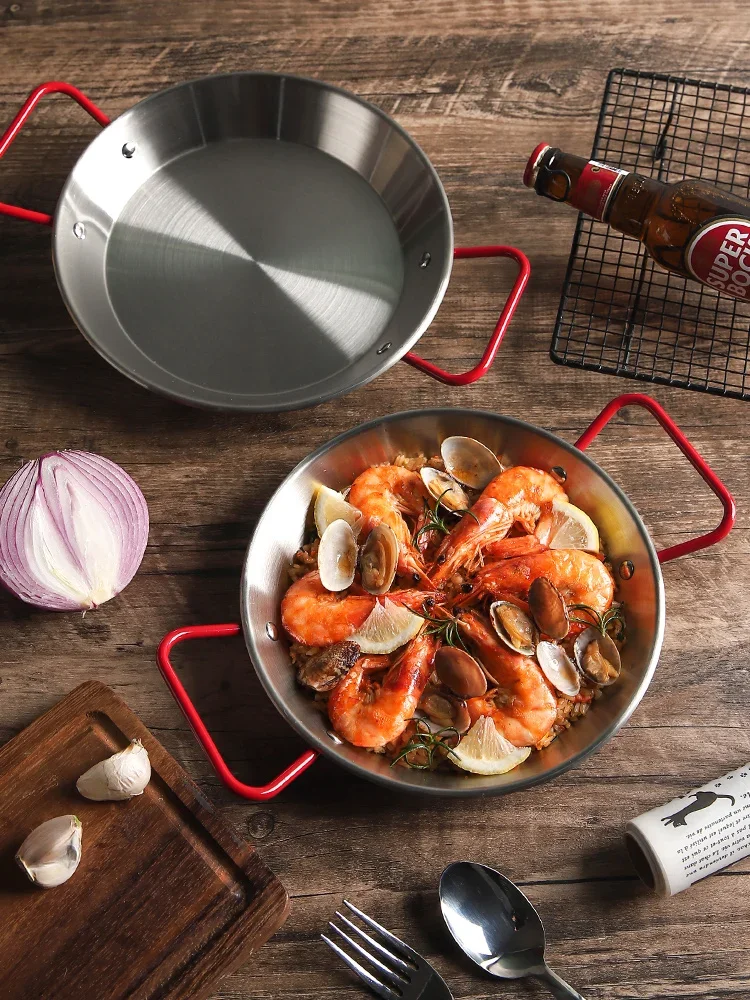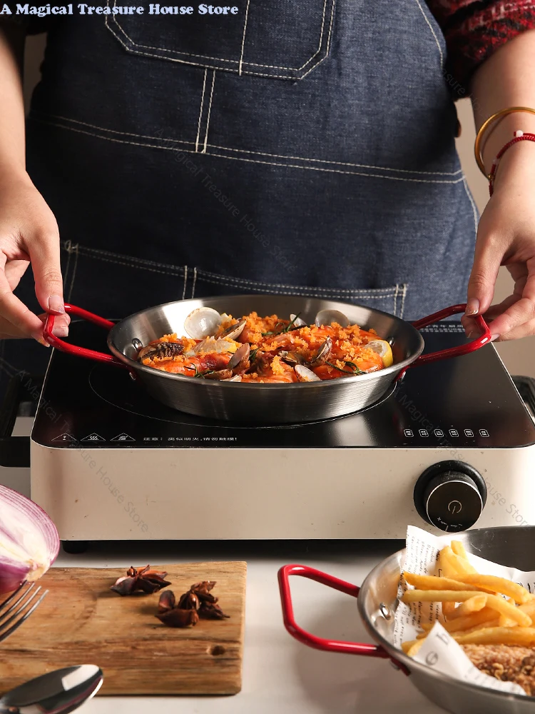 Spanish seafood rice Pot thickened stainless steel Cooking Paella Pan Lobster Snack Plates Saucepan Dry Pots Double Ears HotPot
