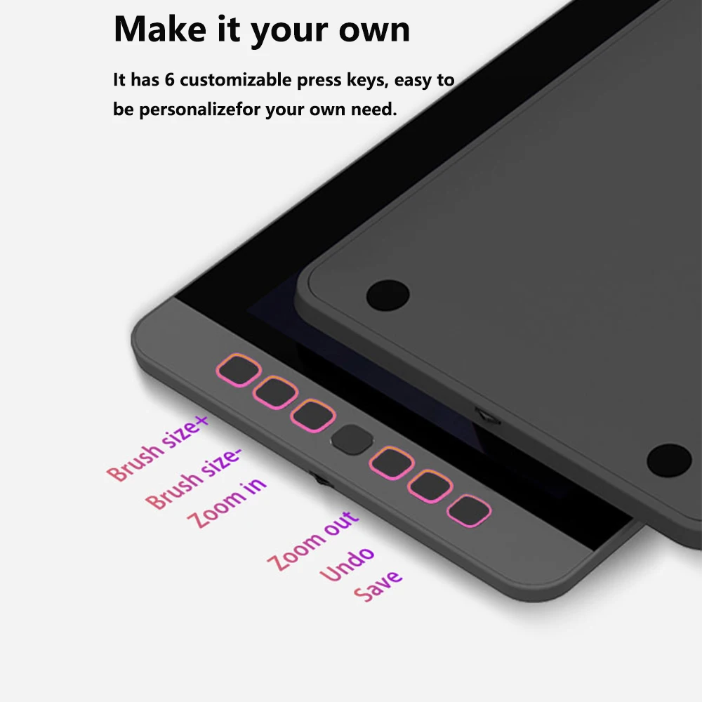 -There are 6 shortcut keys available to be customized according to your own creative habits, like zoom in/out, scroll up and down, and more, to accelerate your work efficiency.