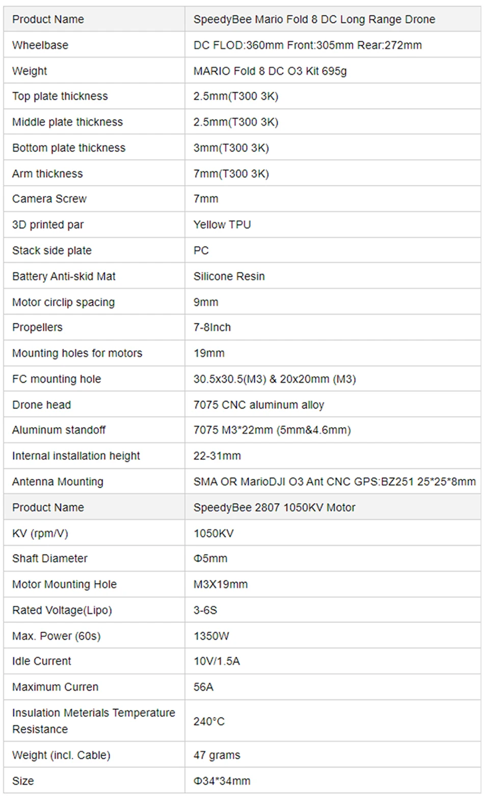 SpeedyBee Mario Fold 8 DC Long Range Drone F722 V3 FC 50A 4in1 ESC 2807 Brushless Motor O3 Air Unit For RC FPV Drone Quadcopter