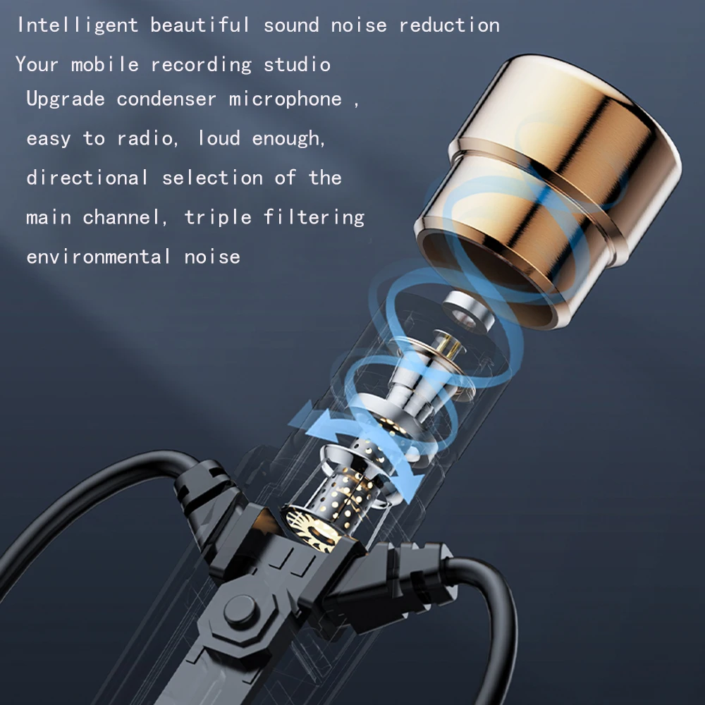 1.[Intelligent noise reduction] Upgraded condenser microphone, easy to radio, loud enough, directional selection of the main vocal channel, triple filtering environmental noise.