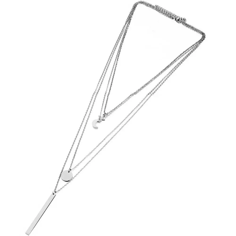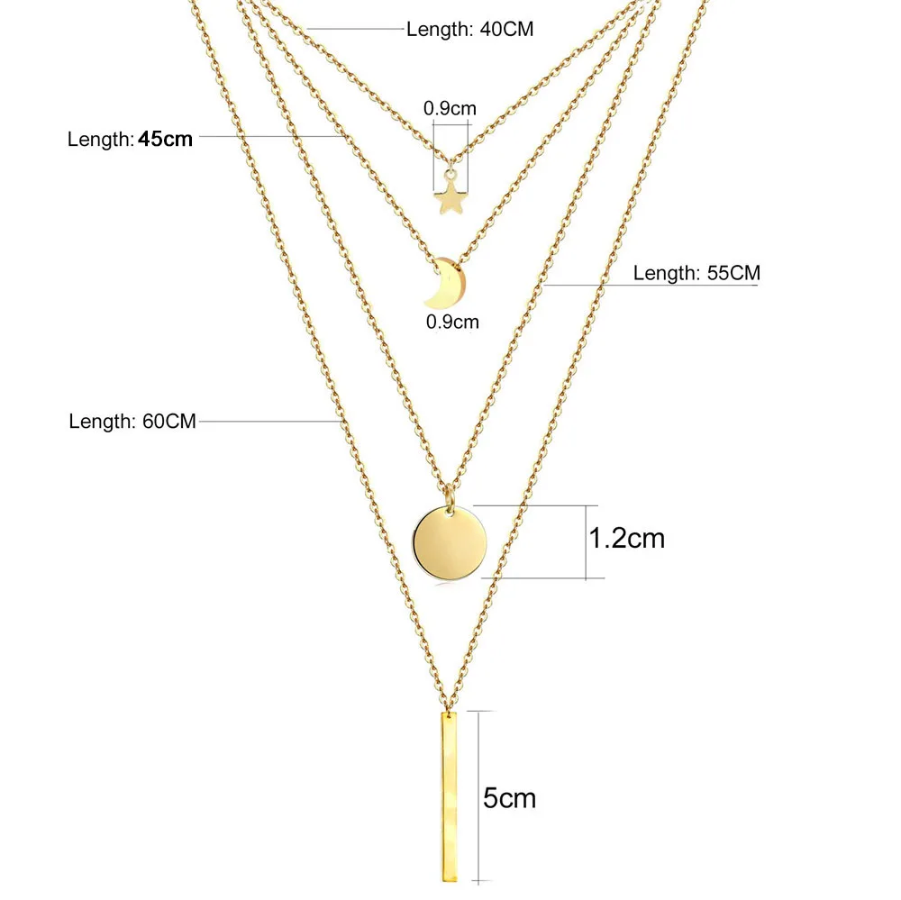 Stainless Steel Chain Pentacle Star Round Coin Moon Bar Pendants Necklaces For Women Multi Layered Necklaces