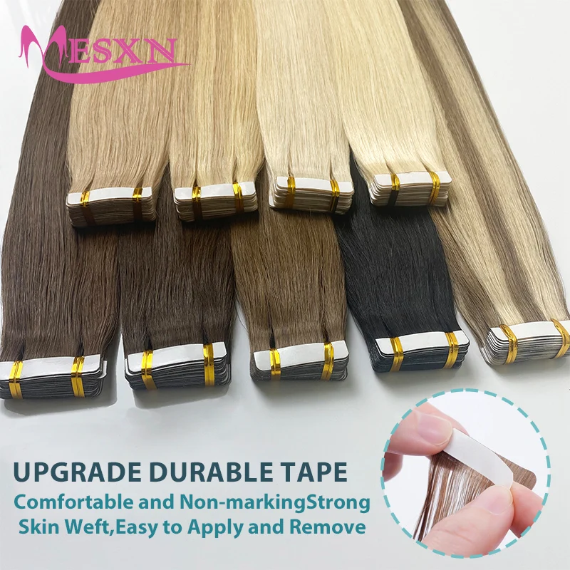 Straight Tape In Hair Extensions Real Human hair Natural Hair Extension 16″-24″ Black Brown Blonde Invisible Can dye For Salon
