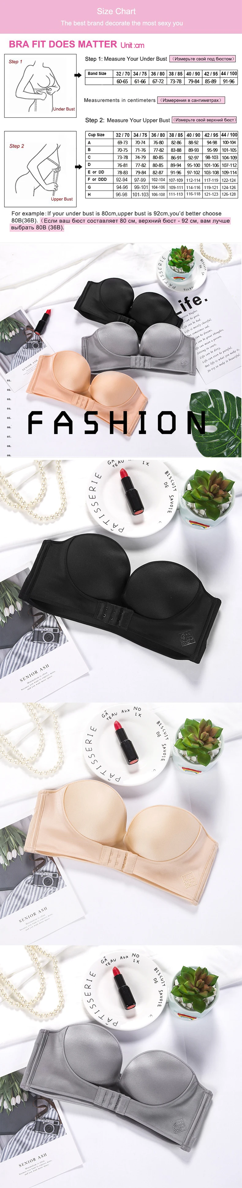 Strapless invisible bra front button sexy seamless glossy non-slip and off-the-shoulder bras Comfort Push Up Lingerie