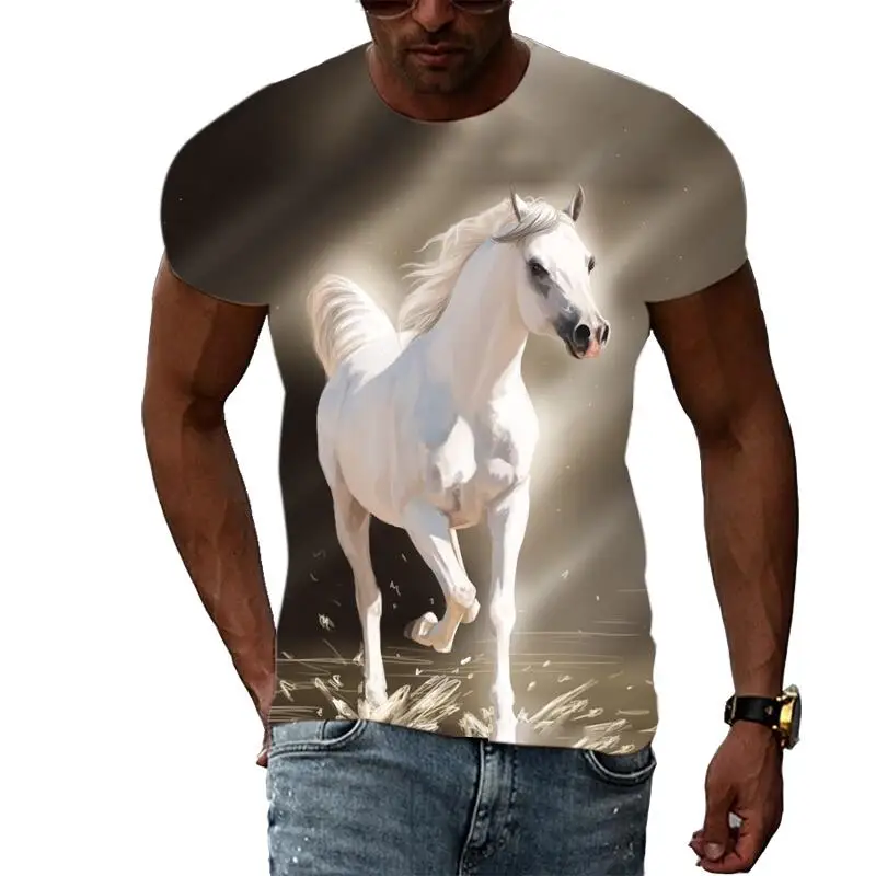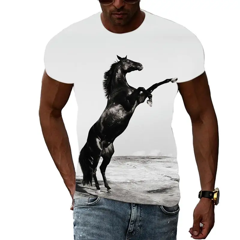 Summer Fashion Graphic Animal Horse T Shirts For Men Casual 3D Print Tee Hip Hop Harajuku Personality Round Neck Short Sleeve