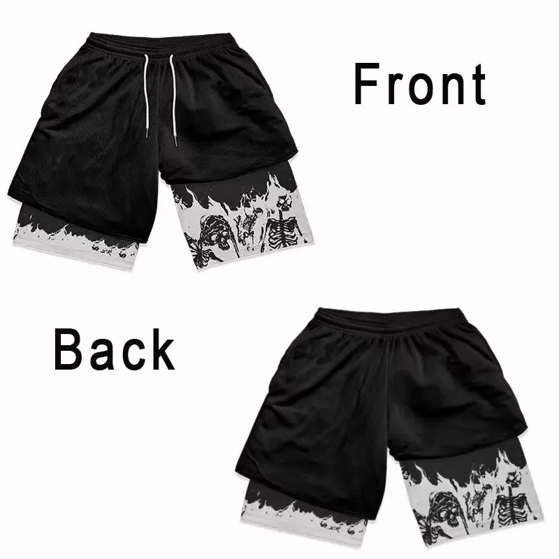 Summer men’s double layered shorts men anime high waisted oversized breathable sports shorts training and fitness sports shorts